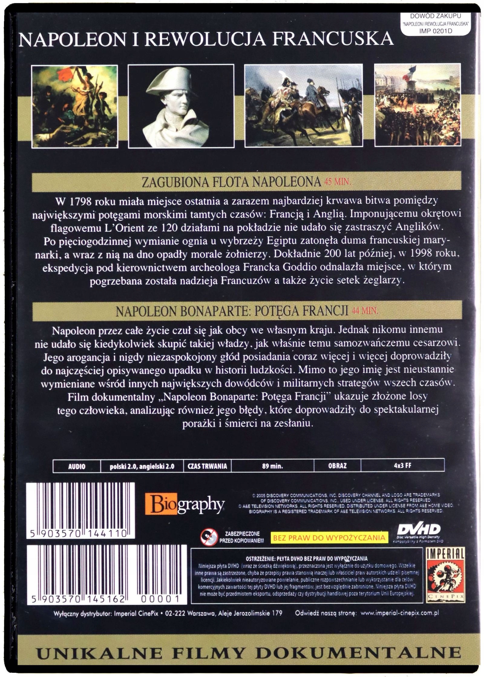 Втрачений флот Наполеона. У 1798 році відбулася остання і найкривавіша битва між найбільшими морськими державами того часу: Францією та Англією. Вражаючий флагман L'Orient зі 120 гарматами на борту не зміг налякати англійців. Після п'ятигодинної перестрілки біля берегів Єгипту гордість французького флоту затонула, а разом з нею впав моральний дух солдатів. Рівно через 200 років, у 1998 році, експедиція під керівництвом археолога Франка Годдіо знайшла місце, де похована надія французів і життя сотень моряків. Наполеон Бонапарт: Сила Франції - Наполеон все життя почувався чужинцем у своїй країні. Однак нікому більше не вдавалося зосередити стільки влади, як цьому самопроголошеному імператору. Його зарозумілість і невгамовна жага все більшого й більшого призвели до найбільшого падіння в історії людства. Проте його ім’я постійно згадується серед інших найбільших полководців і військових стратегів усіх часів. Фільм показує складну долю цієї людини, а також аналізує його помилки, які призвели до його вражаючої поразки та смерті у вигнанні.