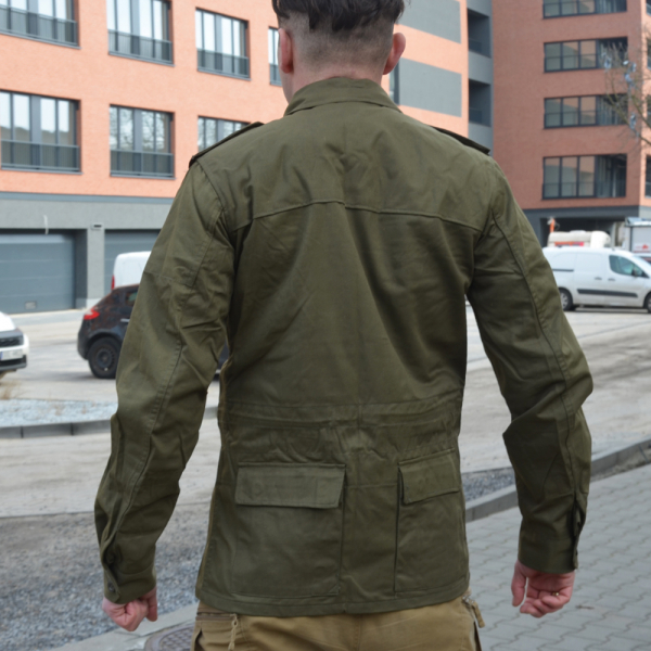 Оригінальна чеська армійська куртка з високоякісного матеріалу 50% бавовна, 50% поліестер - модель М85. Піджак оливкового кольору. Застібається на гудзики, прикриті штормовим клапаном. Парка має 4 кишені – 2 на рівні грудей і дві внизу спини – усі застібаються на кнопки.
