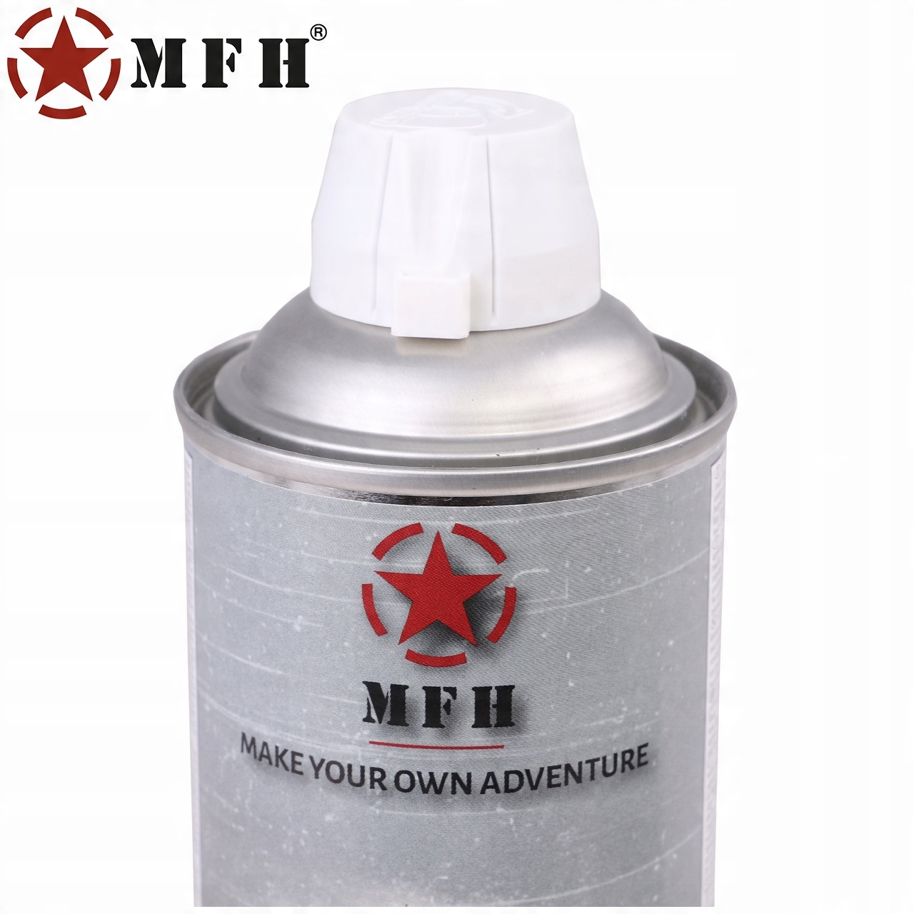 Універсальна фарба-спрей від німецького бренду MFH Int. Комп. Призначений для завершення лакофарбового покриття транспортних засобів, обладнання та меблів. Ідеально підходить для маскування зброї, ручних предметів і навіть будівель.