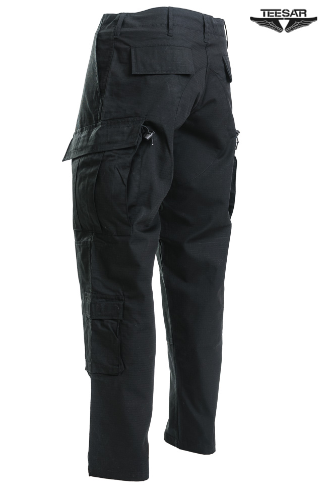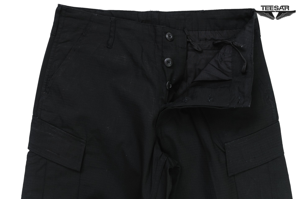 Вісім кишень, дві класичні, дві на спині, дві CARGO і дві на литках. Нагрудні кишені CARGO підвищеної вантажопідйомності, розташовані похило - це рішення забезпечує доступ до кишень в положенні сидячи, стоячи на колінах і лежачи. Кишені закриваються на липучку, оснащені додатковими шнурками для запобігання втрати вмісту. Спеціальні кишені для м'яких наколінників. Додаткові зміцнення з другим шаром матеріалу в місцях, найбільш схильних до зносу - сидінні, промежині та колінах. Прикрита мушка з гудзиками. Регульований шнурок на талії. Шлевки шириною 50 мм. Регульовані манжети на ніжках.