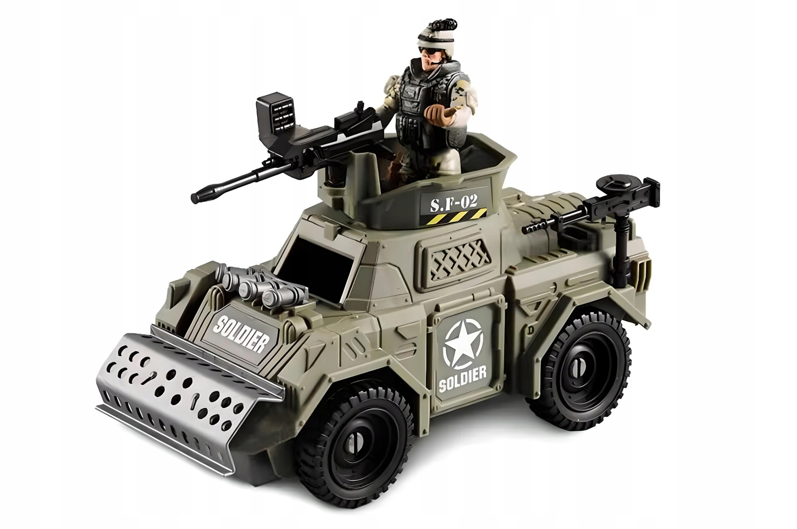 - В набір входить військовий автомобіль з солдатом, військовим аксесуари.