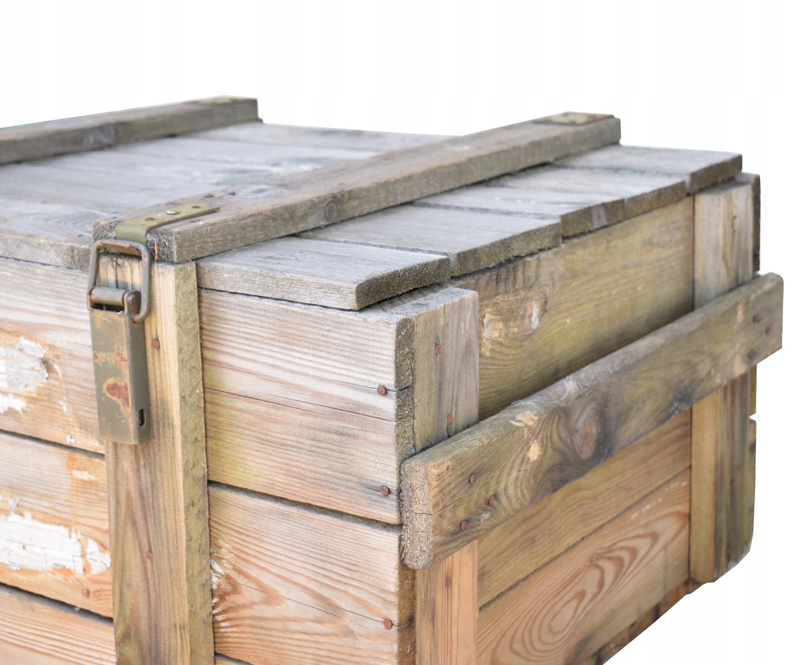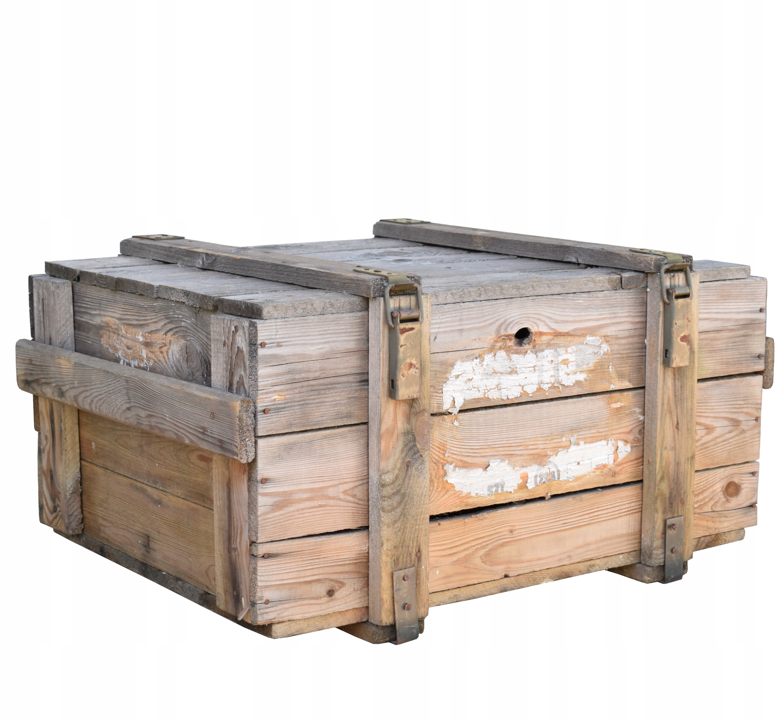 Дерев’яна коробка передач з віком на петлях, коробка передач закрита пряжками, має металеві арматури та транспортні ручки