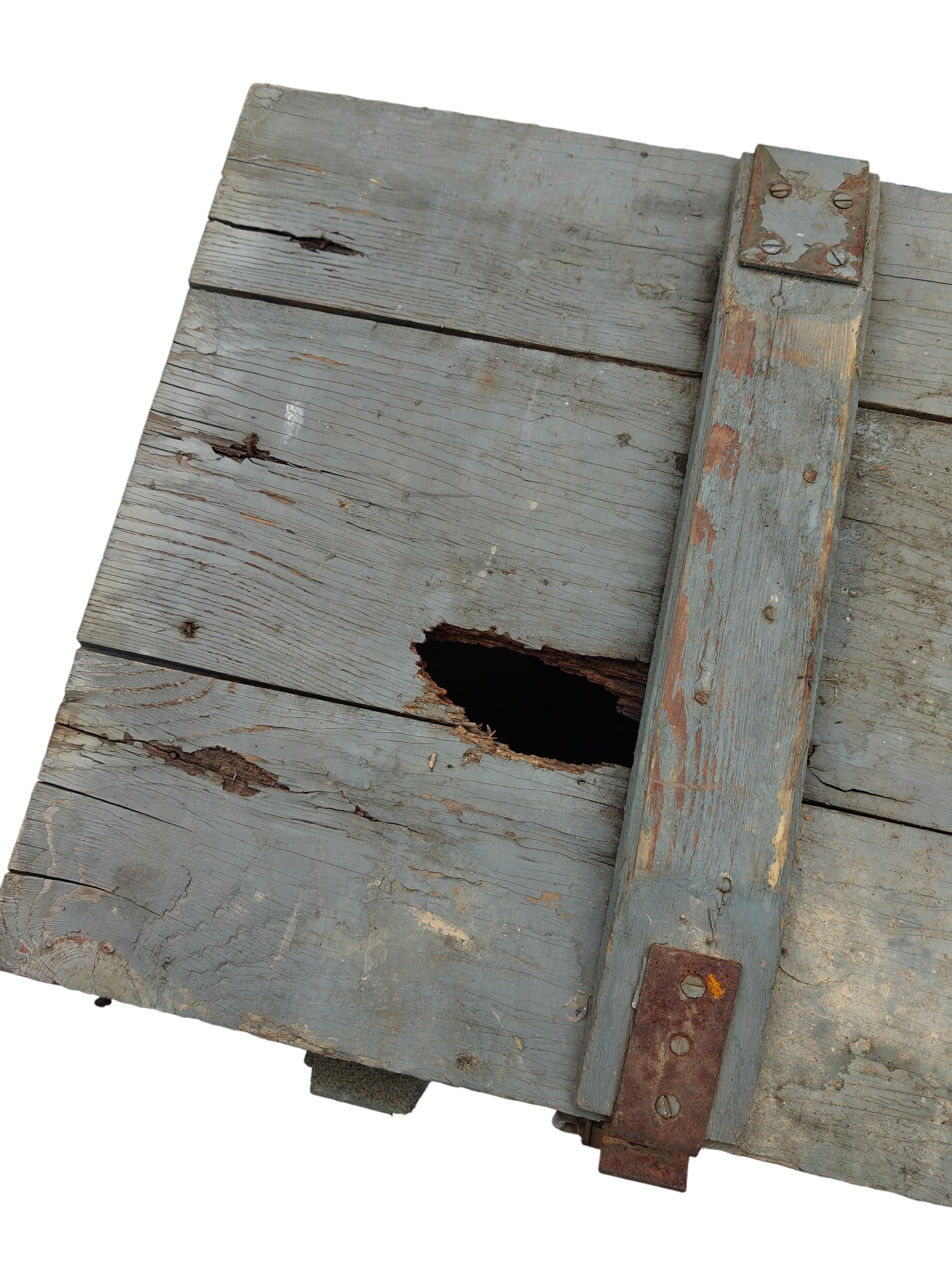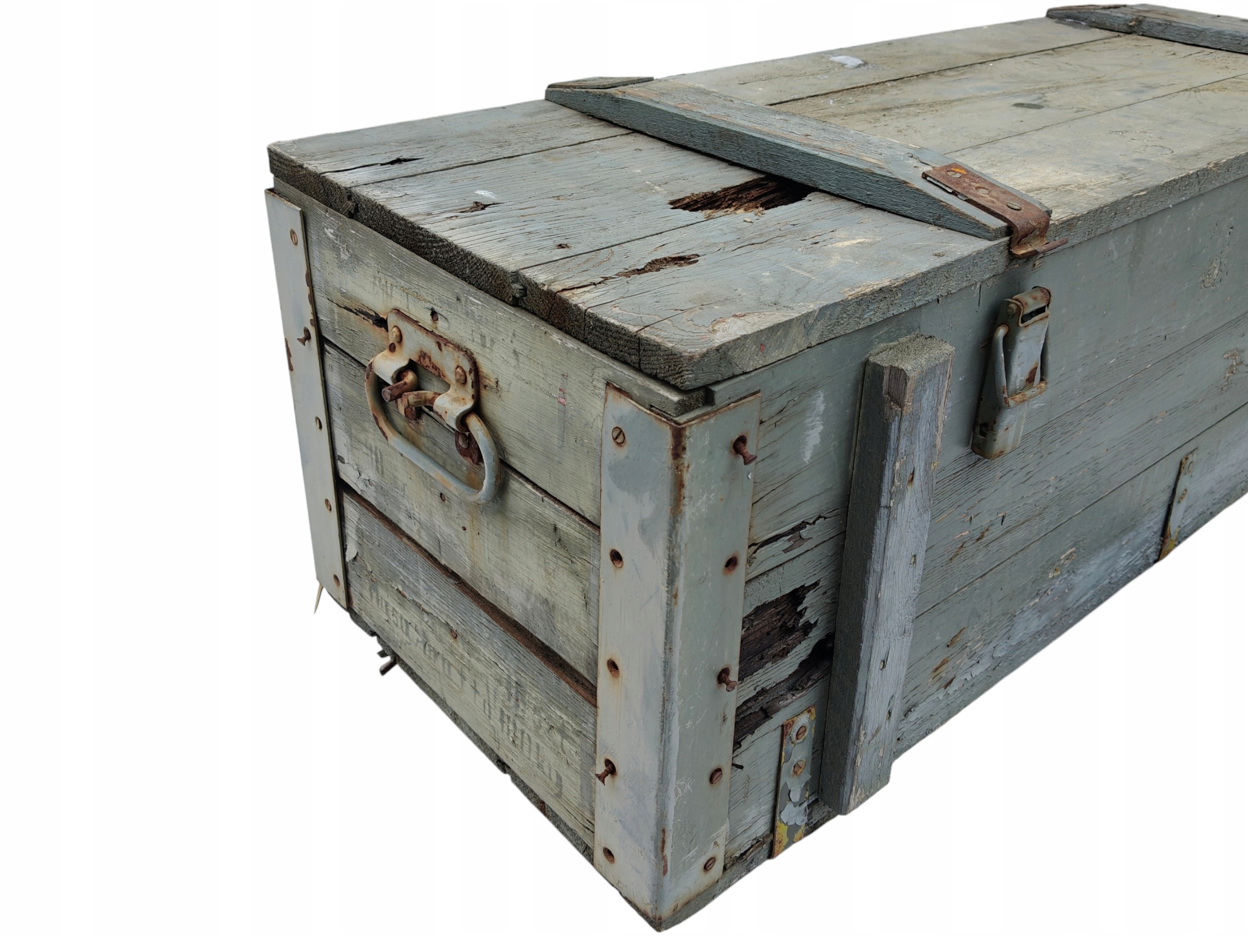 Аукціон присвячений саме коробці на фото. Копія в задовільному стані. Дірка в колоді, відколи на стінах, патина на металевих елементах. Не дивлячись на зовнішній вигляд, після незначних доопрацювань ящик можна використовувати.