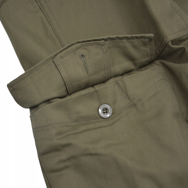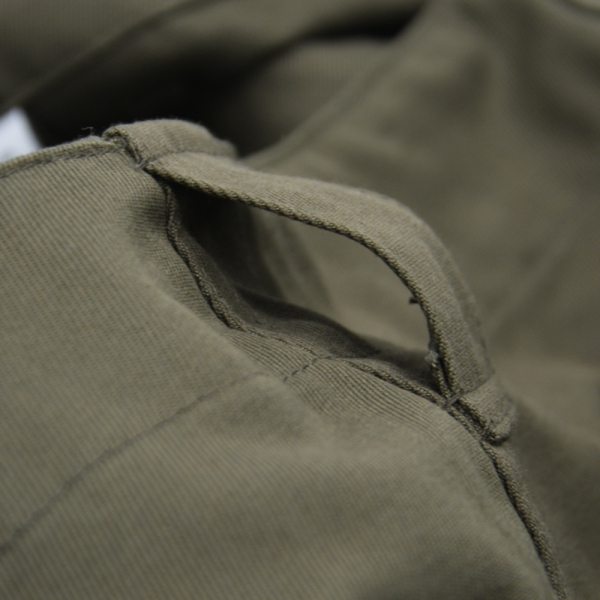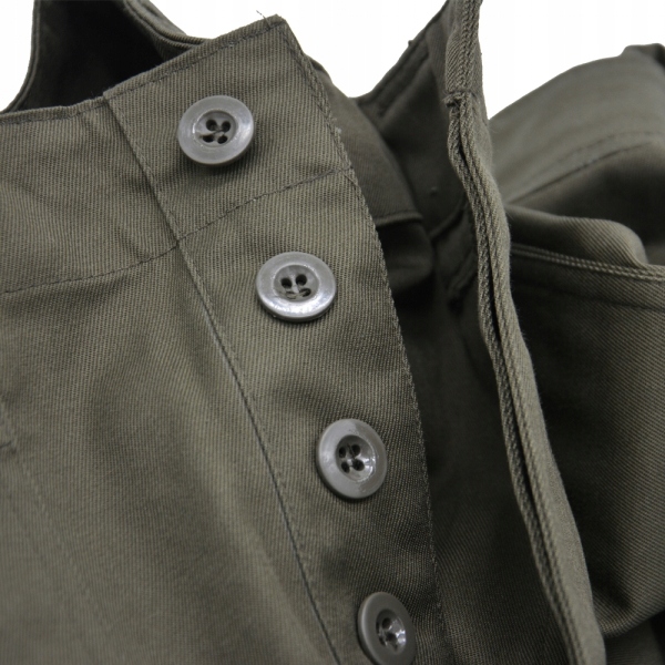 Штани з матеріалу, що складається з 50% бавовни, 50% поліестеру. Крій забезпечує зручність і комфорт. Мушка застібається на гудзики, а на талії є додаткові шлевки для пояса шириною до 4 см. Всього в штанах чотири кишені: дві стандартні на рівні стегон і дві бічні.