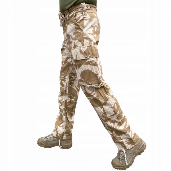 Оригінальні контрактні штани British Trousers Combat Легкі штани в камуфляжі Desert DPM. Combat pants - буквально бойові штани. Виготовлений з матеріалу DPM - легкого і швидковисихаючого. Штани мають дві великі кишені на стегнах, що застібаються на гудзик і дві класичні бічні кишені. Штани застібаються на гудзик і блискавку.