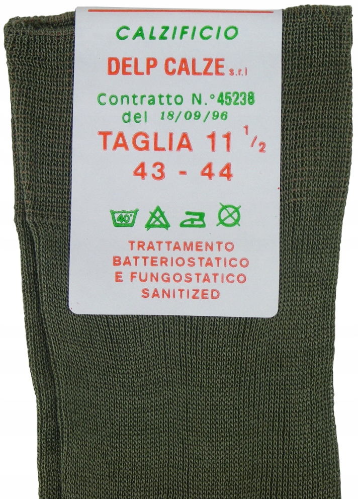 - Приклад етикетки (всі оригінальні можуть відрізнятися) пропонованих італійських військових шкарпеток (не китайських, а Італійське шиття) з номером військового контракту, що підтверджує їх оригінальність