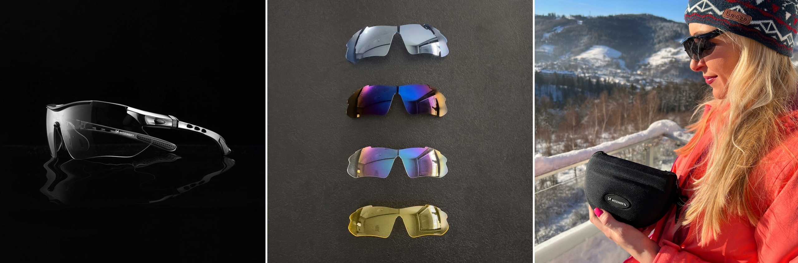 Спортивні окуляри оснащені 3 різними змінними лінзами. Кожен з них був розроблений для роботи в певних погодних умовах. Базовий - чорний забезпечить ще кращий контраст і, перш за все, ефективний захист від УФ-А та УФ-В променів. Змінні лінзи доступні в таких кольорах:
