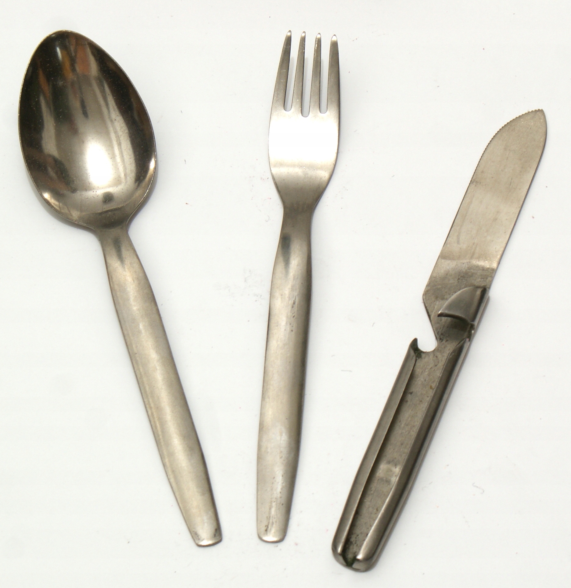 оригінальний, контрактний військовий заплямований Лефана: ложка, вилки та ніж -набір із сумісними датами виробництва