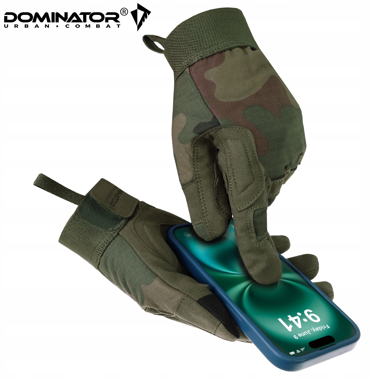 УВАГА! Предметом пропозиції є тактичні рукавички Dominator UC кольору WZ.93. Решта елементів використовуються для візуалізації функціональності.