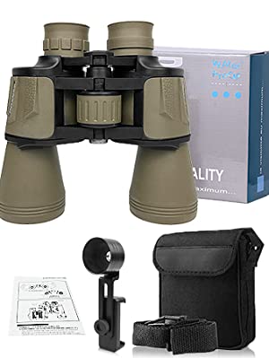 - Портативний бінокль - завдяки ременю для перенесення та дорожній сумці компактний бінокль для дорослих легко носити та зберігати . Бінокль 20 x 50 можна використовувати зі штативом, що зручно для тривалого використання.