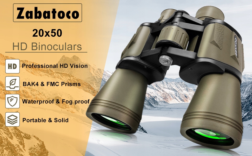 - 【Професійний бінокль】 Високоякісний бінокль з призмою 20-кратне збільшення та 50-мм ширококутний об’єктив для чудової чіткості та яскравості; оснащений 22-міліметровими окулярами із зеленою плівкою та великим полем огляду 56 м/1000 м, який розроблений спеціально для активного відпочинку на природі, наприклад скелелазіння, походів, водіння, спостереження за дикою природою та ландшафтом.