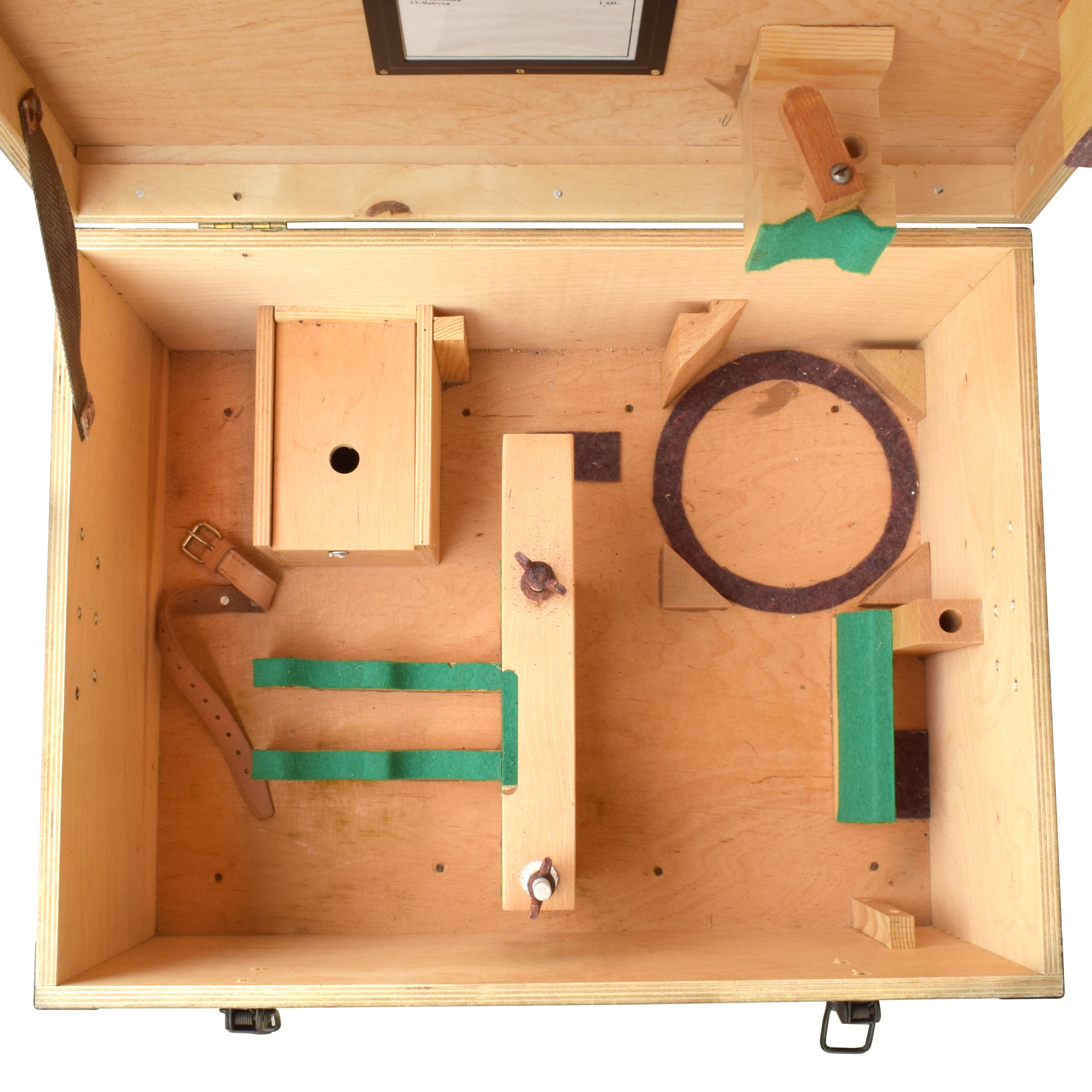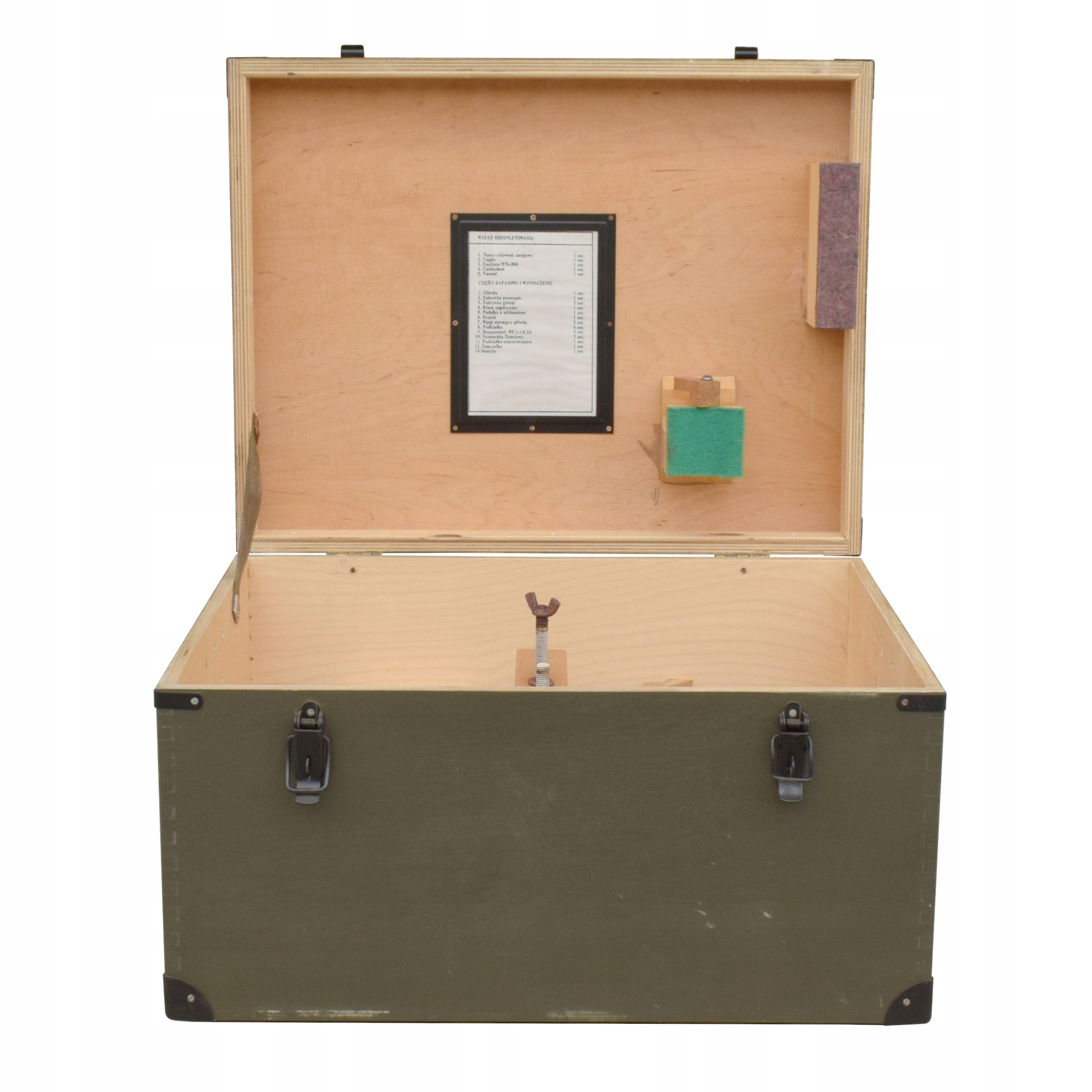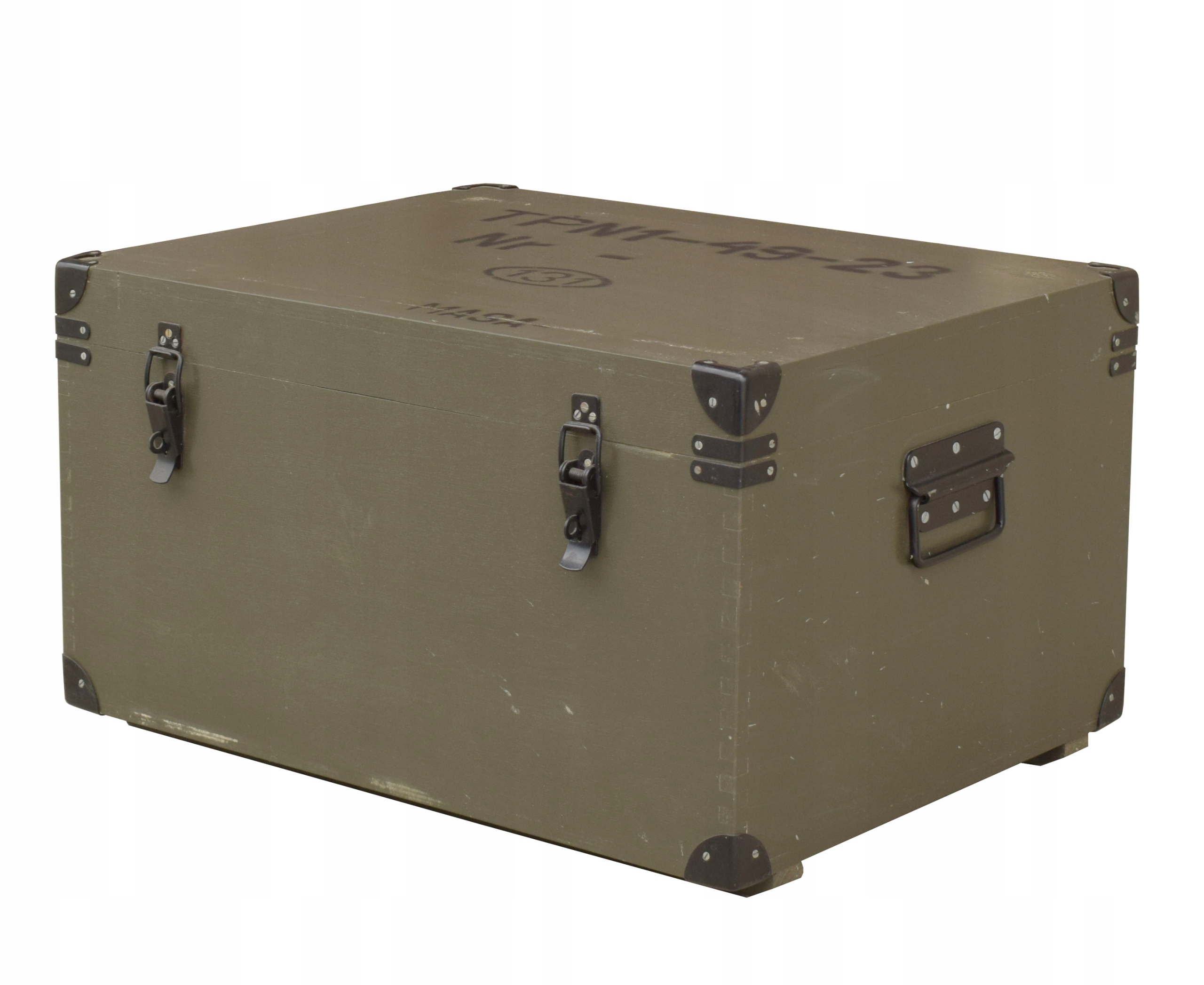 Ящик має металеву фурнітуру та транспортні ручки. Закривається двома маленькими пряжками з можливістю кріплення навісного замка.