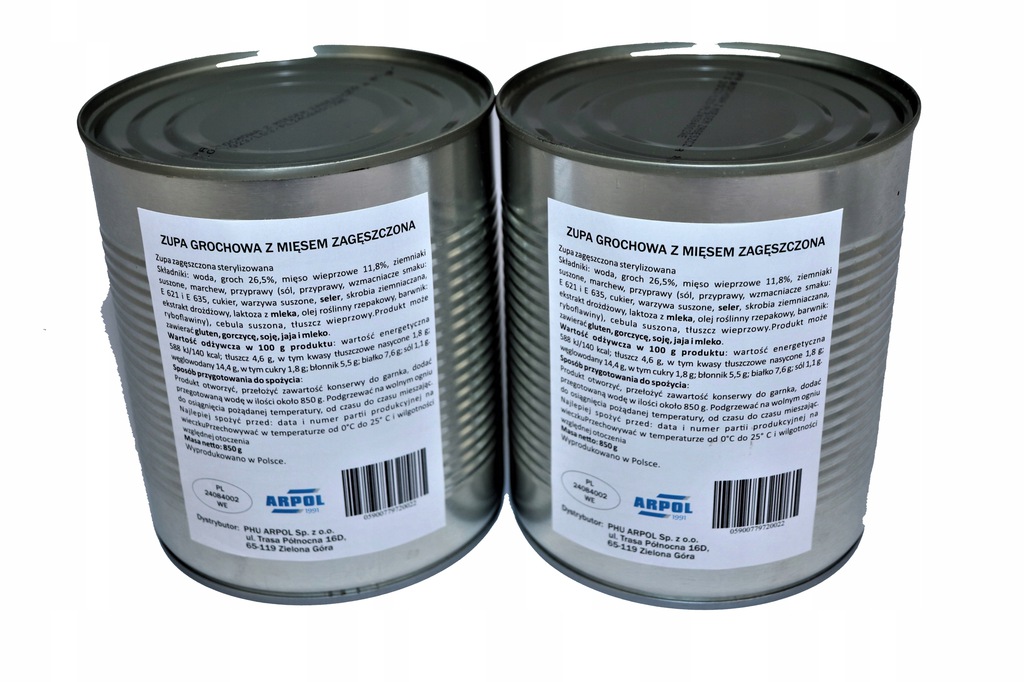 Оплачивая «ВОЕННЫЙ КОНЦЕНТРИРОВАННЫЙ ГОРОХОВЫЙ СУП С МЯСОМ», вы можете быть уверены, что данное изделие из каталога «Супы» будет доставлено из Польши и проверено на целостность. В цене товара, указанной на сайте, учтена доставка из Польши. Внимание!!! Товары для Евросоюза, согласно законодательству стран Евросоюза, могут отличаться упаковкой или наполнением.