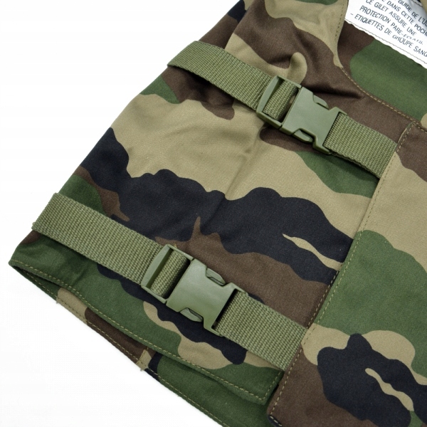 Оригінальний жилет прямо зі складів французької армії. Бронежилети виготовлялися для використання як армією, так і військово-повітряними силами, які є двома найбільшими родами французьких військ. Завдяки дизайну, який є стильним і оптимальним для більшості бойових сил, ці перевірені в боях бронежилети використовувалися французькими солдатами по всьому світу. Було представлено дві версії жилета в камуфляжі CCE і DCE (пустеля). Жилети не мають вставок. Спереду і ззаду є кишені для записів. Безперечною перевагою є невелика кишеня для інструментів на висоті грудей, захисний комір і можливість регулювати розмір. На нагрудній кишені є віконце, де можна вказати вашу групу крові, а над кишенею — липучка для вашого імені.