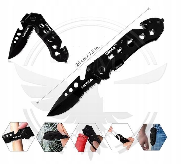 8. професійний ніж, складне лезо, наполовину зазубрене з розбивачем скла та різаком ременя безпеки