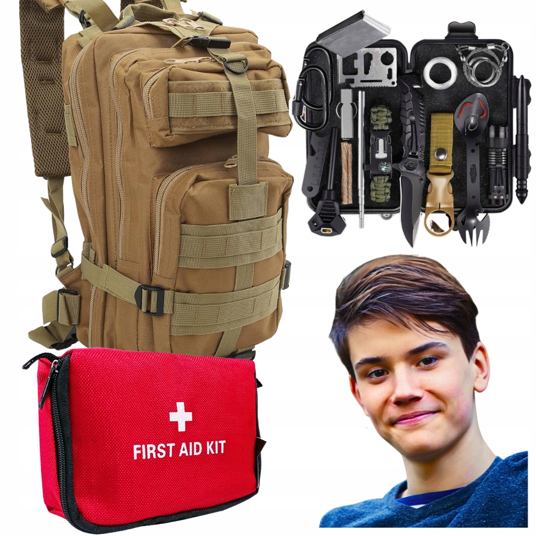 ТАКТИЧНИЙ РЮКЗАК 35 Л + НАБІР ДЛЯ ВИЖИВАННЯ + ЧЕРВОНИЙ ПЕРШИЙ НАБІР