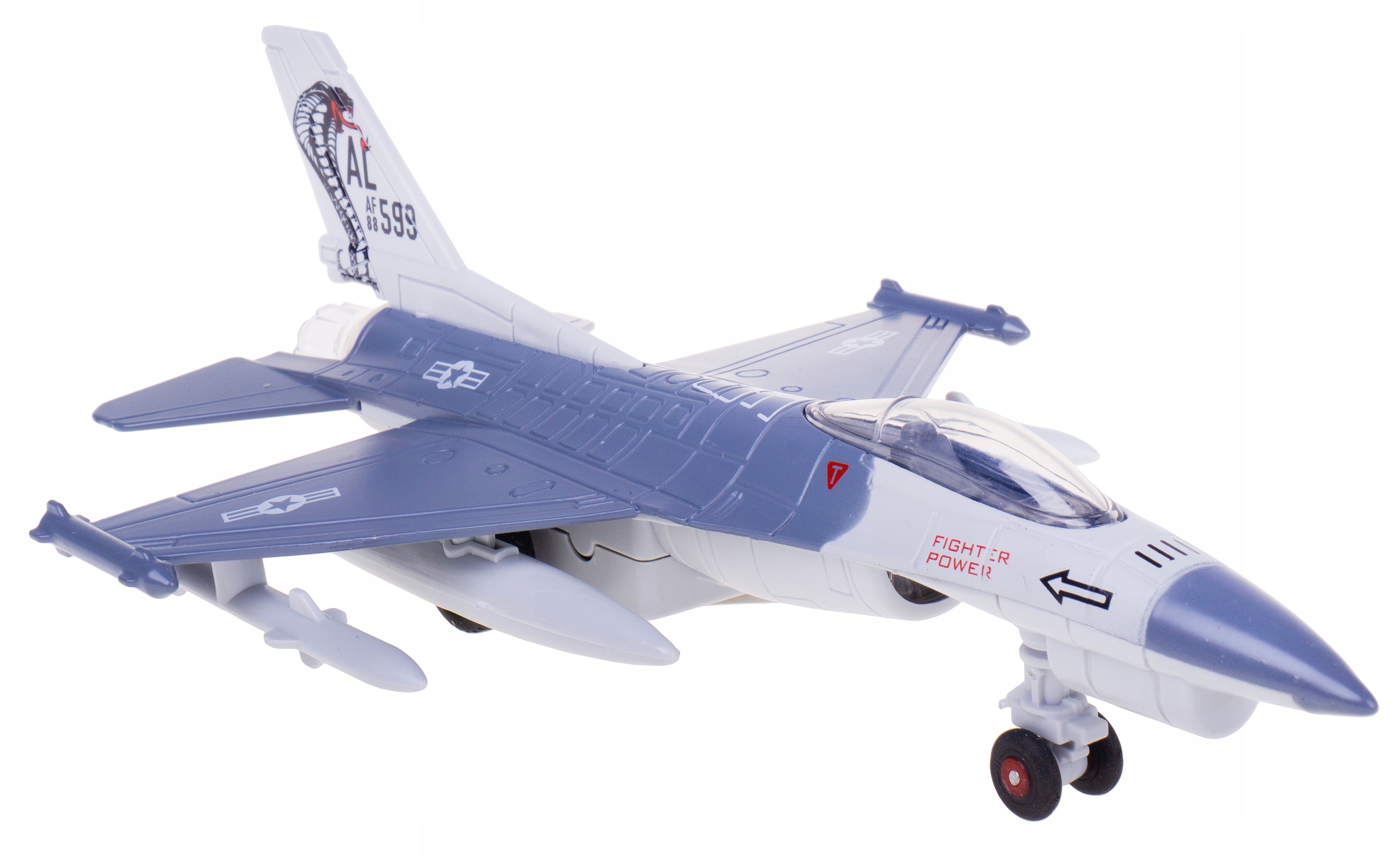 Військовий винищувач F-16 виготовлений дуже ретельно з металу та пластику з відкатним приводом.