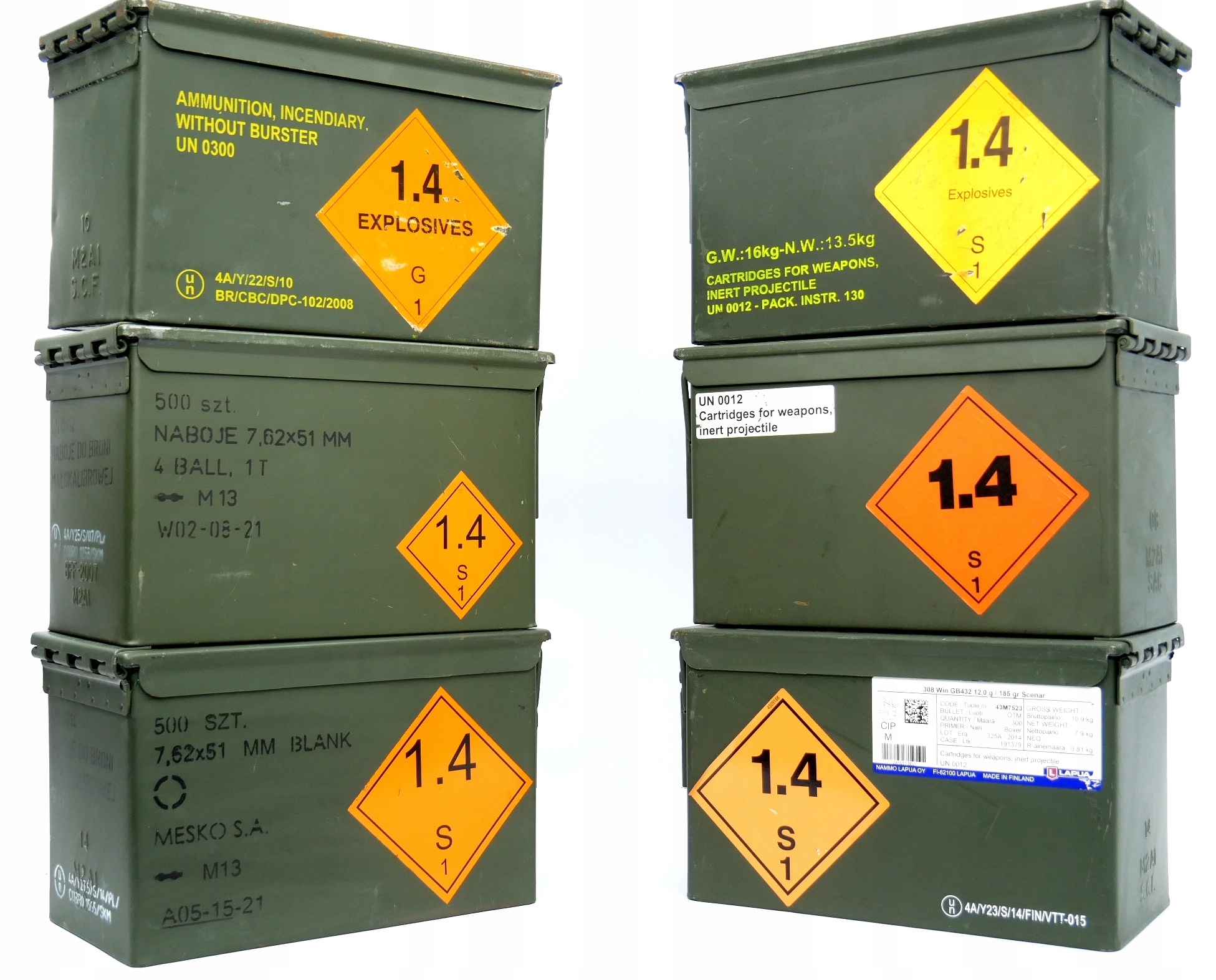 Речі можуть відрізнятися відтінком кольору, кількістю та типом маркування, видимими слідами тривалого зберігання, це військові транспортні ящики.