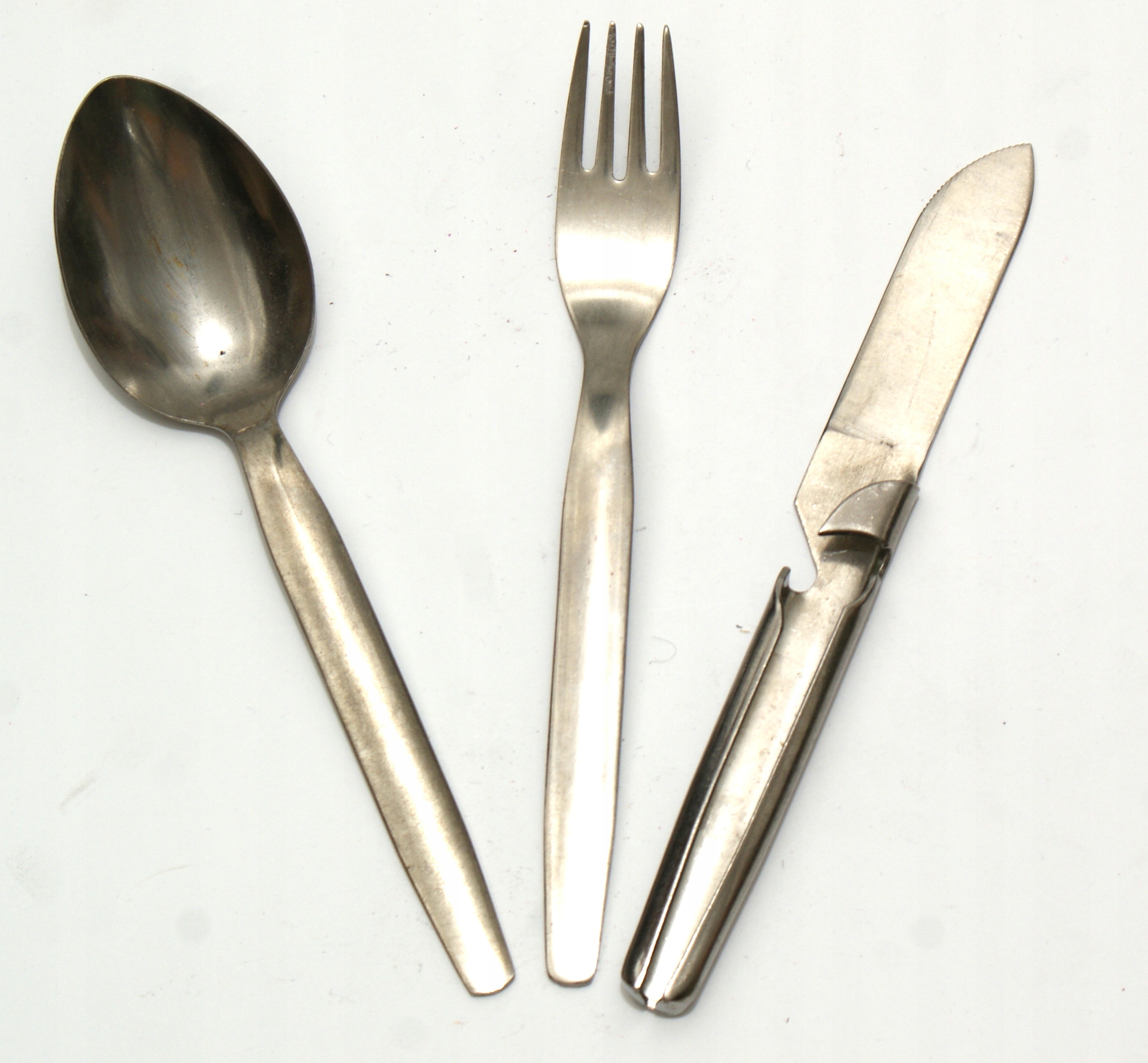 - Класичний, простий у складанні набір, що містить ложку, виделку та ніж. Тримач для ножа містить інтегрований відкривач для пляшок і консервів. Рукоятку ножа також можна використовувати як ручку для польської військової їдальні.