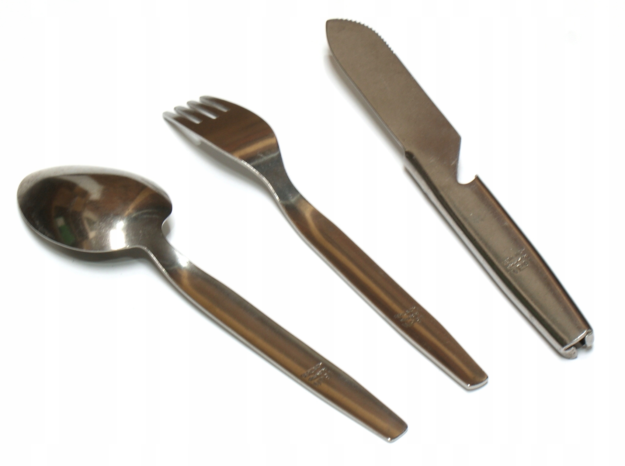 - Класичний, простий у складанні набір, що містить ложку, виделку та ніж. Тримач для ножа містить інтегрований відкривач для пляшок і консервів. Рукоятку ножа також можна використовувати як ручку для польської військової їдальні.