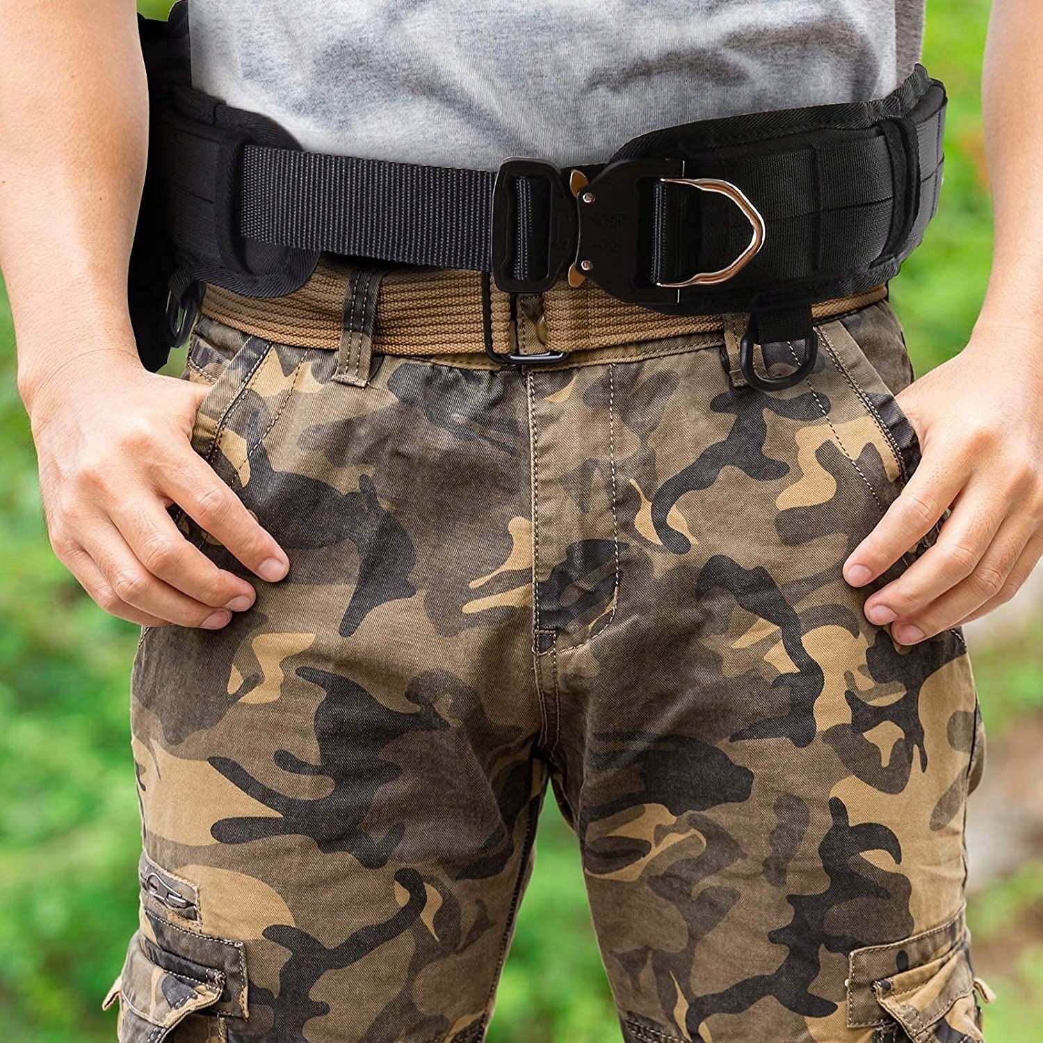 【регульована довжина】 Прихований розмір носіння: 31*2,76 дюйма. Розмір бойового пояса: 48*1,9 дюйма, тактичний бойовий ремінь Молле регулюється і відірваний, внутрішній пояс може використовуватися незалежно.