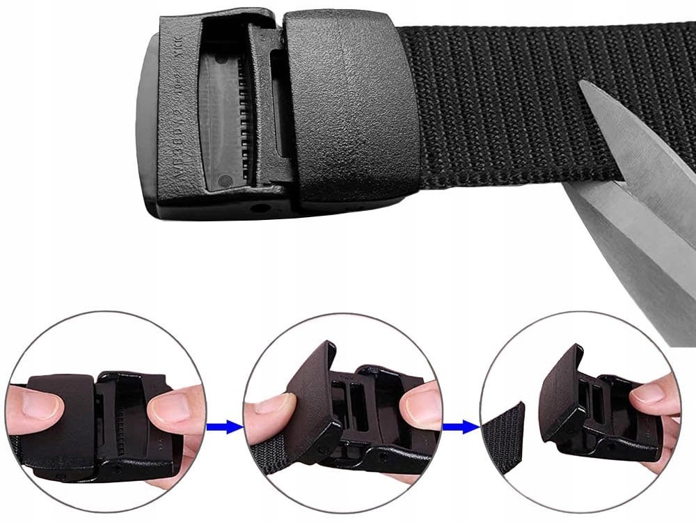 Практичний ремінь із пластиковою пряжкою. Без металевих елементів.