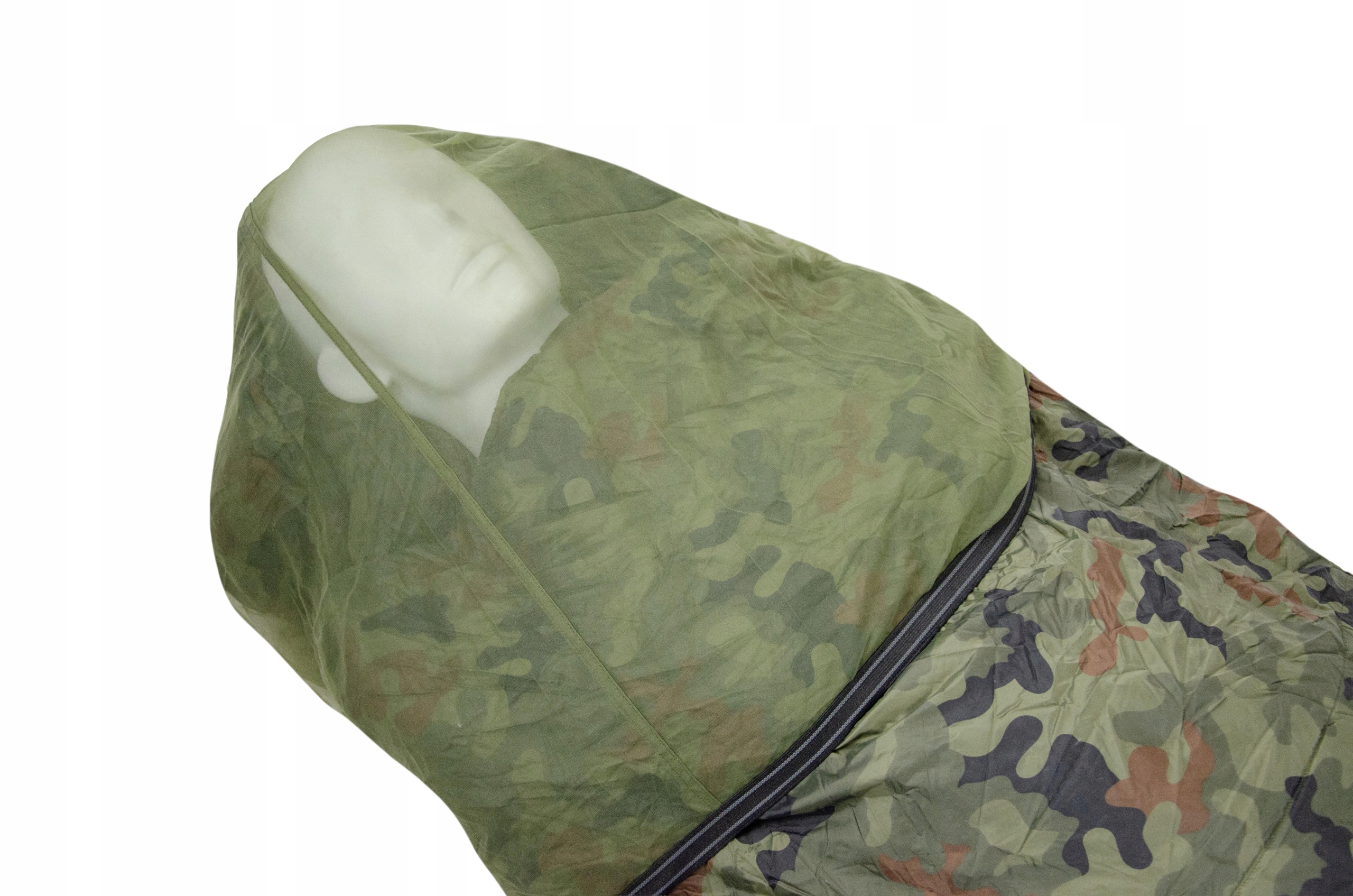 Військовий спальний мішок 729A/MON ідеально підходить для будь-якої пори року завдяки своїй двокомпонентній конструкції. Складається з двох окремих спальних мішків: літнього (маленького та легкого) та осіннього (більшого розміру). Літня частина оснащена москітною сіткою, захованою в спеціальній кишені на капюшоні. Залежно від температури, ви можете використовувати спальні мішки окремо або помістити літній спальник в осінній і таким чином отримати відмінну теплоізоляцію навіть при дуже низьких температурах. Кожен із двох спальних мішків має окремий компресійний мішок для упаковки.