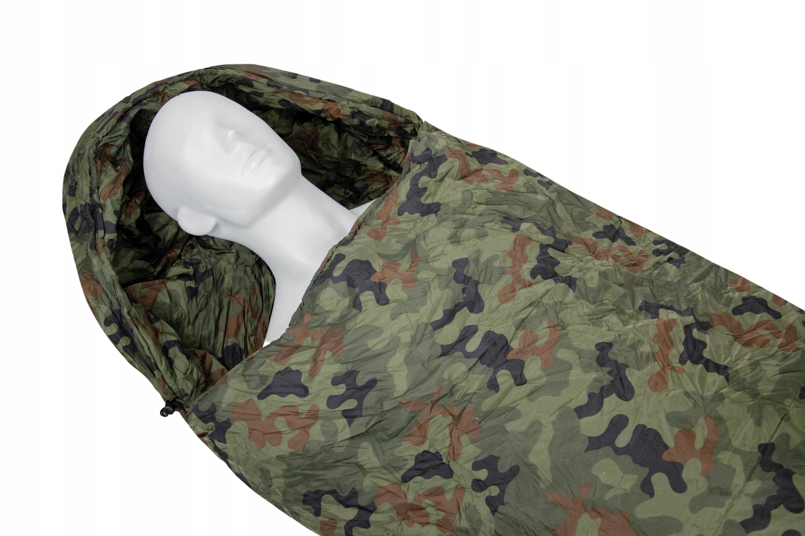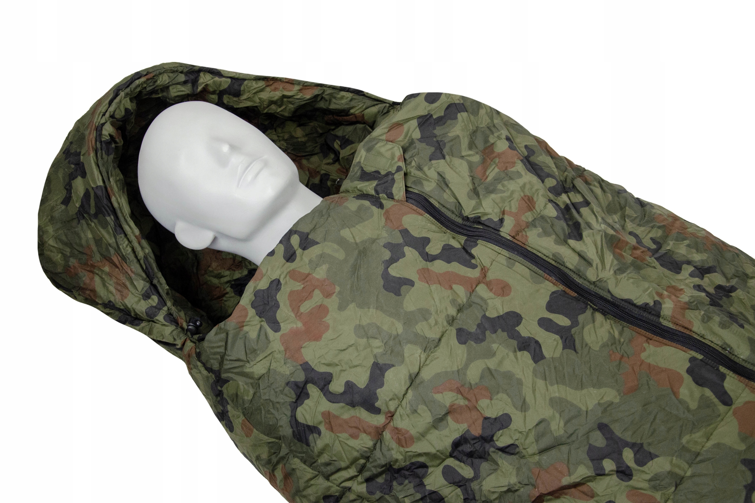 Спальники виготовлені з дихаючої, водонепроникної та вітронепроникної поліамідної тканини в камуфляжі WZ 93 (спальний мішок і чохол 100% поліамід, наповнювач 100% поліестер). Вони оснащені двосторонніми блискавками, що дозволяє зручно регулювати температуру і вентиляцію всередині спальника. У верхній частині спального мішка є утеплений капюшон з регульованим шнурком.