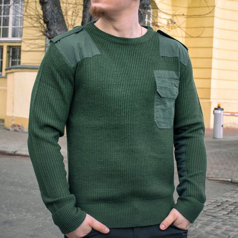 Нагрудна кишеня закривається клапаном на липучці. У нього можна помістити документи та ручку. Якщо ви хочете прикріпити еполети, ви можете розмістити їх у спеціально відведеному місці на плечах. Військовий светр BW — міцний одяг, розроблений для складних погодних умов.