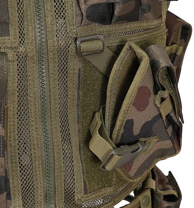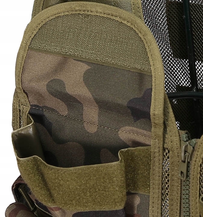 На правому клапті є три одиночні мішечки для складів у стандарті Stanag і зручна кишеня з липучкою для встановлення пластиру. у верхній частині клаптя виготовлений з анти -слизу колонтитул під колбою із зовнішнім блоком.