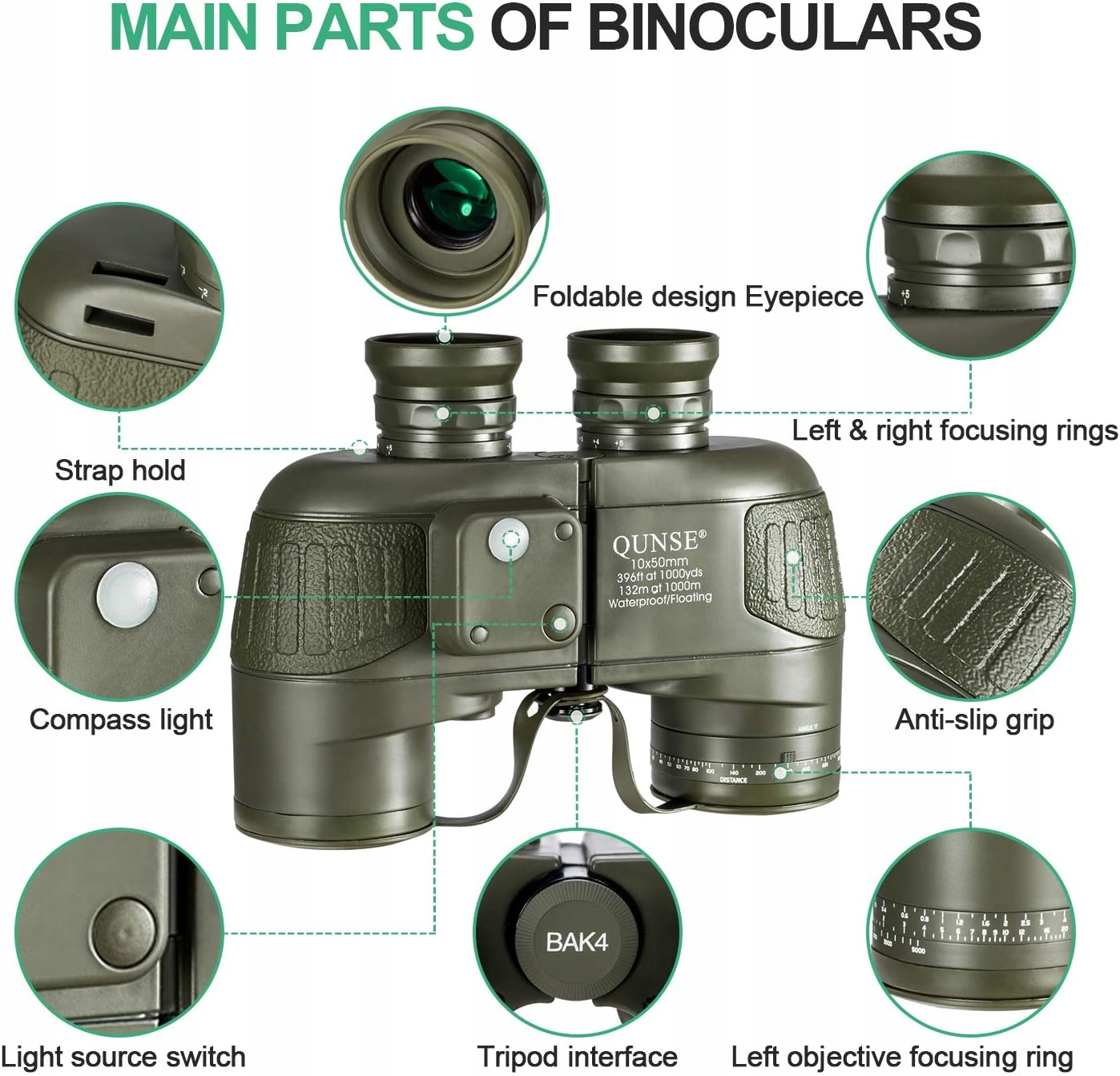 Військовий/мисливський бінокль QUNSE 10 x 50 мм