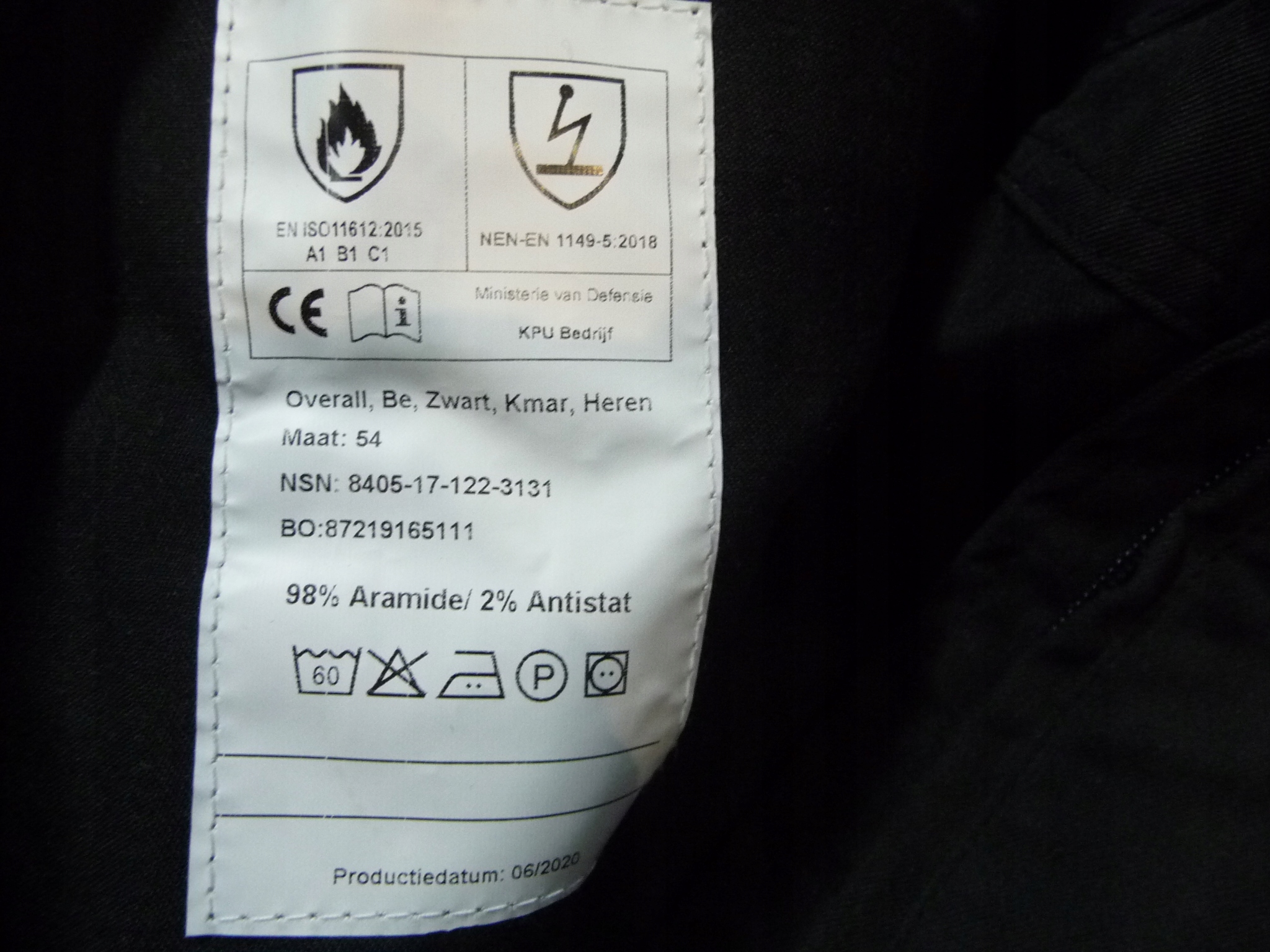 ВІЙСЬКОВО-ТАКТИЧНИЙ КОСТЮМ, НІДЕРЛАНДІ, ВОНЕВОНЕЗАЩИТНИЙ РОБОЧИЙ ЧОРНИЙ 54