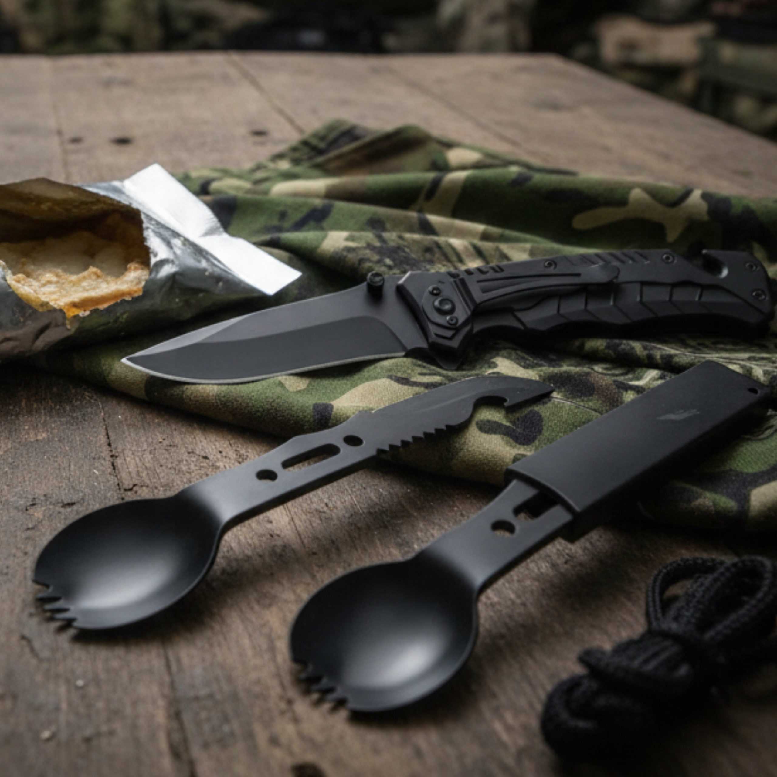 Praktyczny zestaw dla podróżników, który łączy łyżkę, widelec, nóż, otwieracz do butelek i piłę w jednym kompaktowym narzędziu. Ідеально підходить для кемпінгу, блукання або виживання, коли кожен грам багажу рахується.