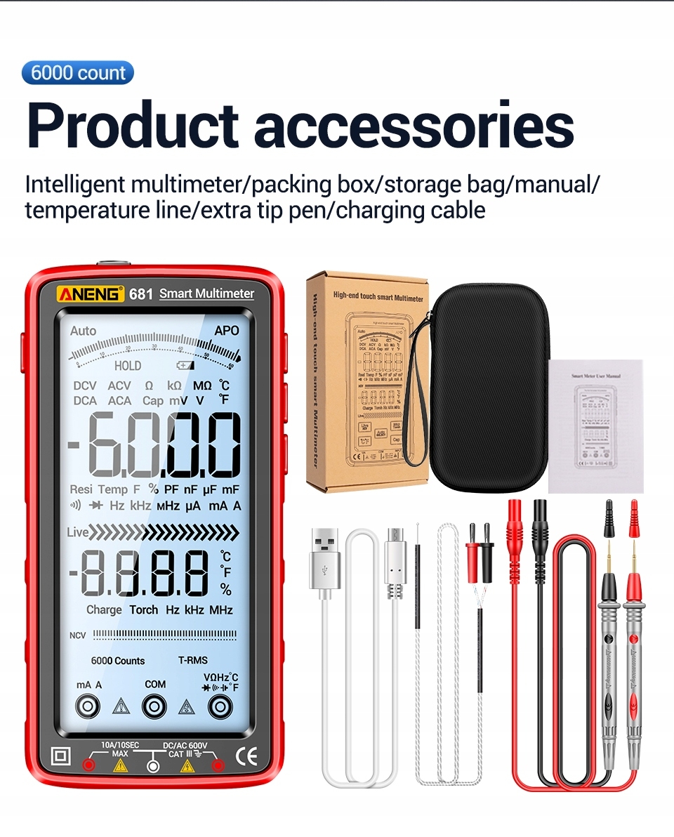 681 — це кишеньковий цифровий вимірювач дійсного ефективного значення з автоматичним скануванням із діапазоном 6000 чисел.