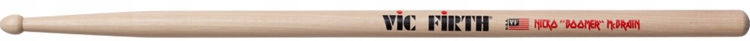 Пара паличок гікорі з маркуванням: NICKO MCBRAIN з краплеподібним дерев’яним кінчиком, середнього розміру, має широкий і сильний звук. Довжина 16 дюймів, товщина 0,595 дюймів