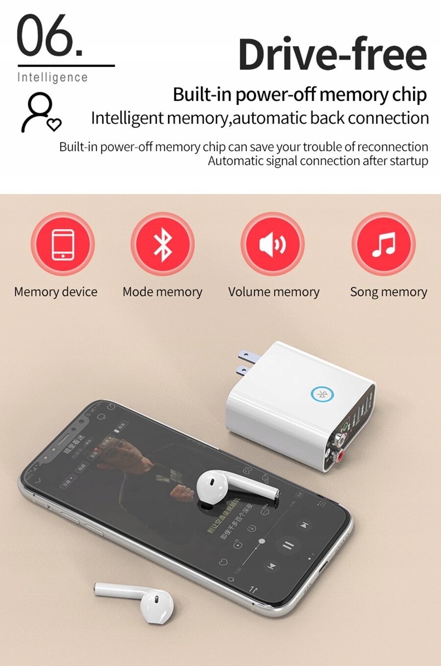 Призначення адаптера - отримувати та передавати музику, що передається через зв'язок Bluetooth з таких пристроїв, як смартфон b> або планшет, від і до таких приймачів, як підсилювач, набір динаміків або автомобільний аудіоплеєр. p>