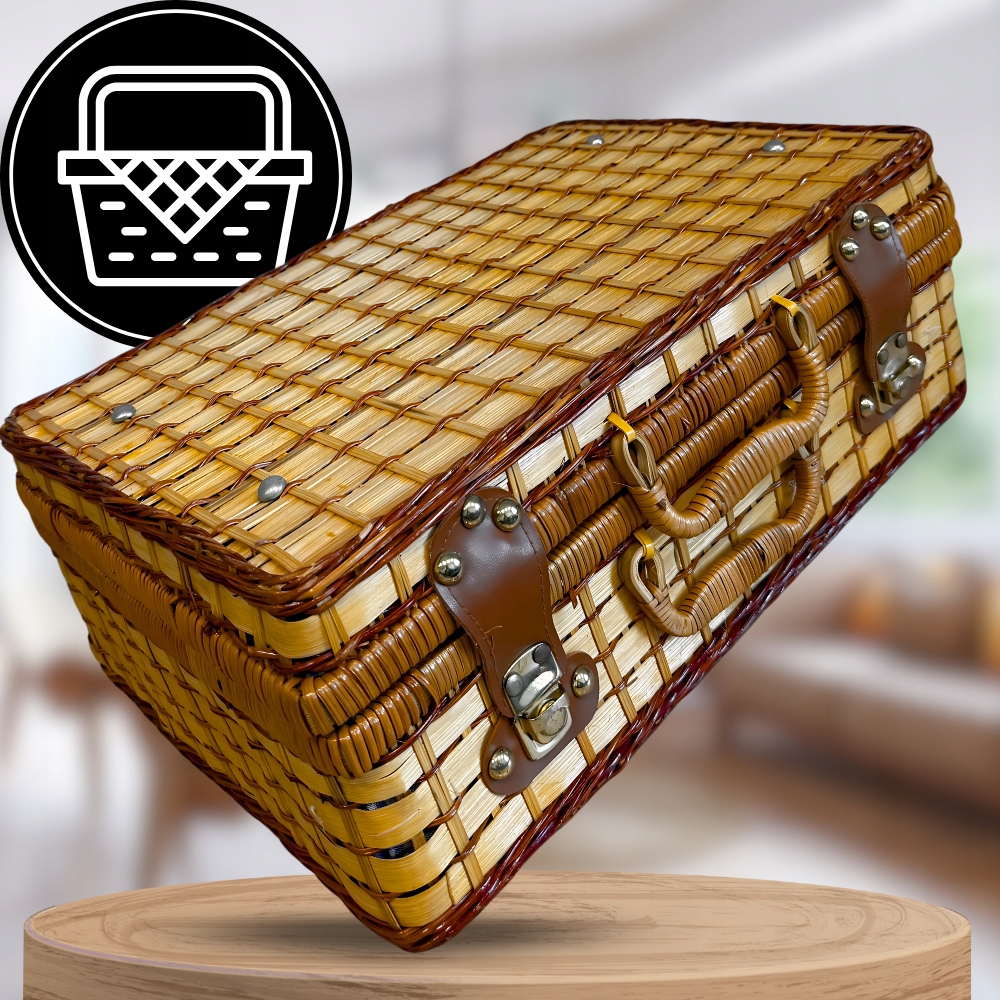 Ви мрієте про кліматичний пікнік під відкритим небом, граючи в ресторані чи елегантне доповнення до інтер’єру? Цей пікнік, встановлений у класичному плетеному кошику, - це поєднання функціональності, стилю та радості від проведення часу разом - ідеально підходить для дому, на свіжому повітрі чи декоративного використання.