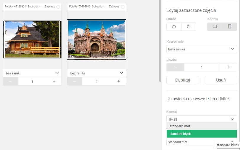 3. Запустіть онлайн-програму, додайте фотографії, виберіть папір, формат і ефекти