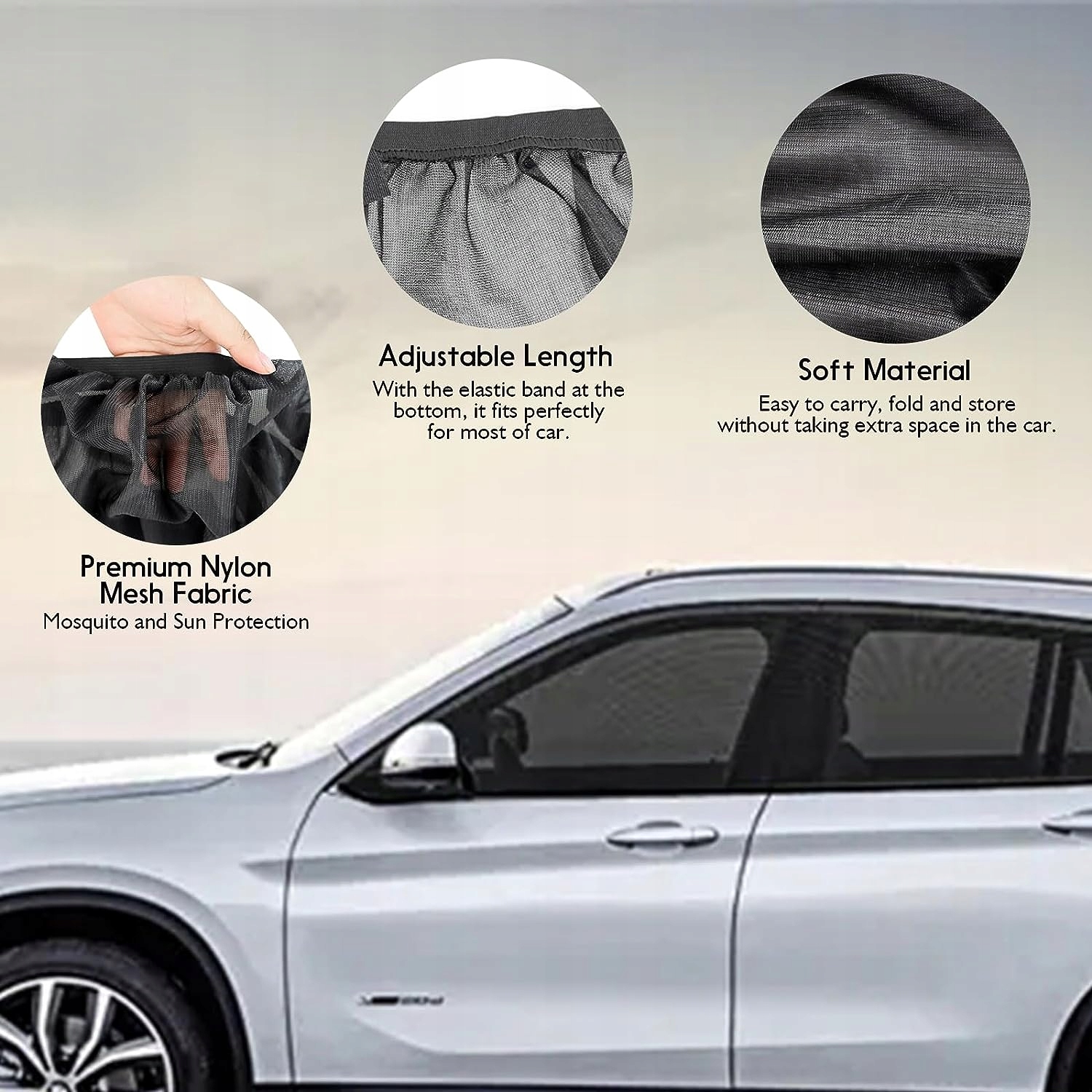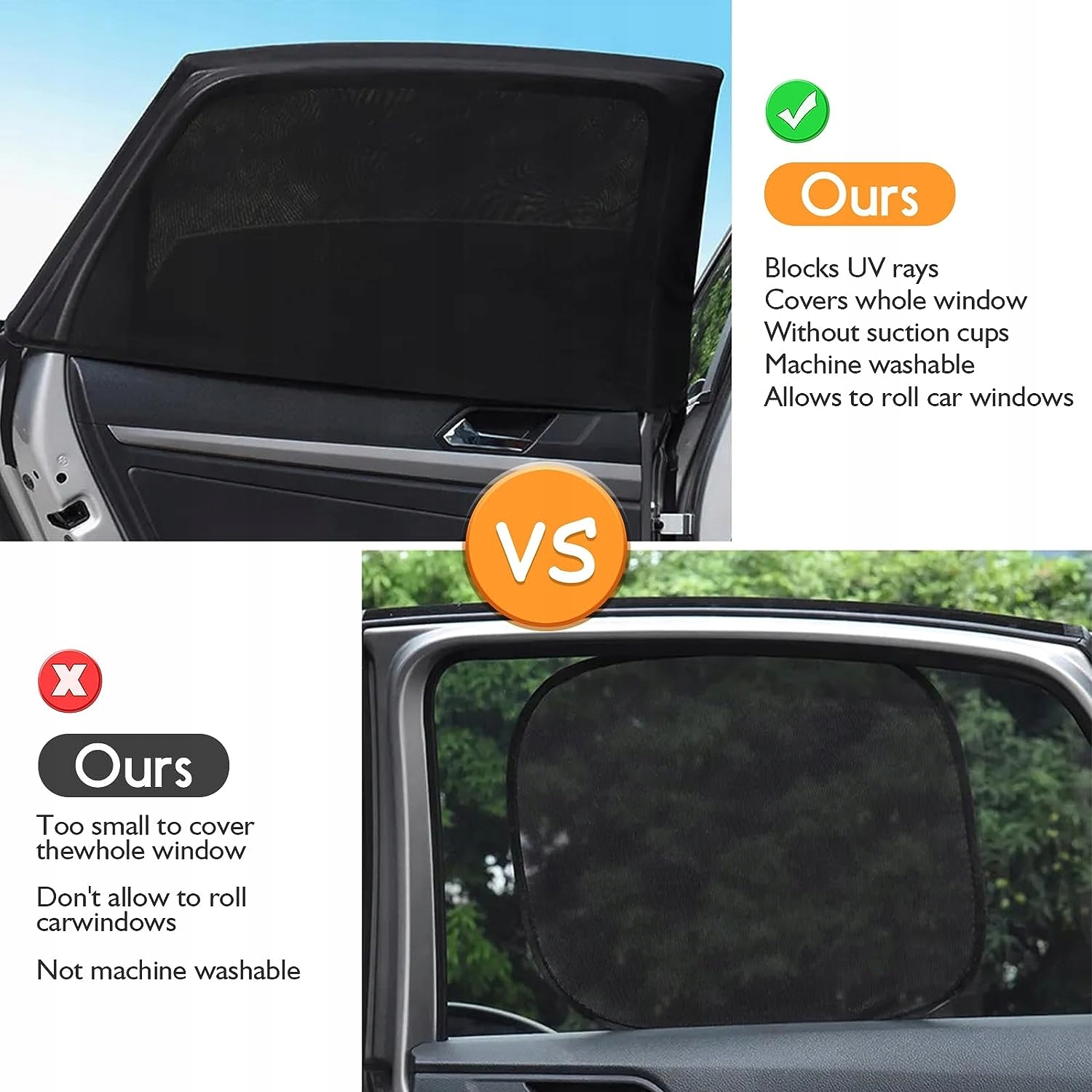 - 【Легко встановлюється та знімається】Захист від сонця, автомобільна сітка, як носок, закриває все заднє бокове скло зверху вниз. Не потрібні громіздкі присоски чи магніти, їх також можна швидко зняти. Автомобільний захист від сонця можна просто скласти і зберігати в будь-якому відділенні. Не пошкоджує фарбу та скло автомобіля, навіть запобігає утворенню плям на склі.