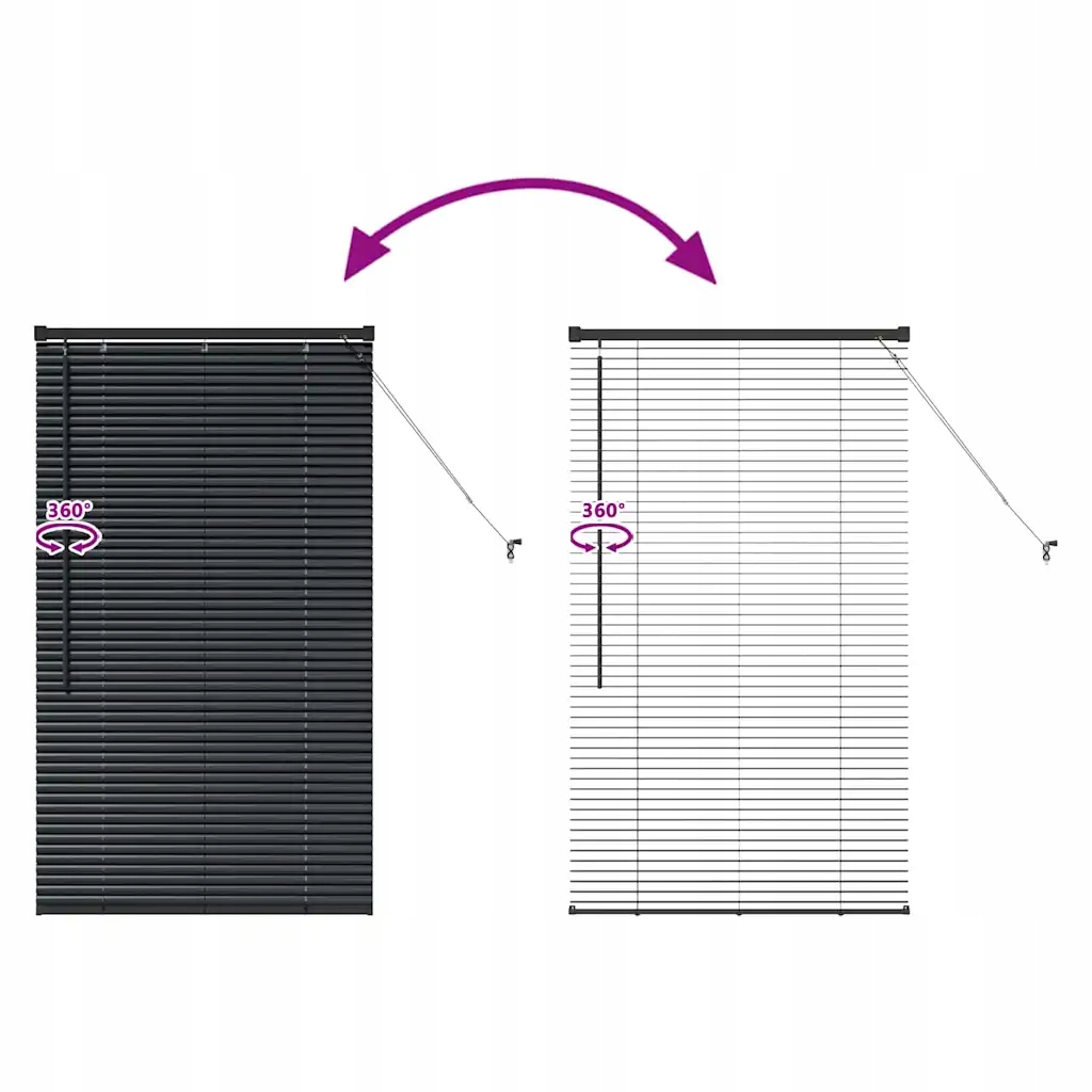 - Алюмінієвий матеріал Ці жалюзі виготовлені з сильного алюмінію, що забезпечує їх міцність без надмірного навантаження. Матова обробка не відображає занадто багато світла, і вона добре вписується в сучасні інтер'єри.