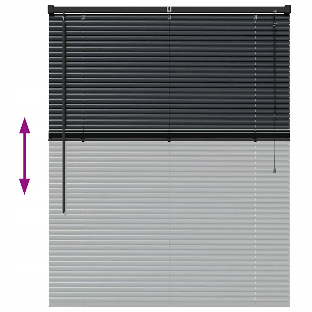 - Алюмінієвий матеріал Ці жалюзі виготовлені з сильного алюмінію, що забезпечує їх міцність без надмірного навантаження. Матова обробка не відображає занадто багато світла, і вона добре вписується в сучасні інтер'єри.