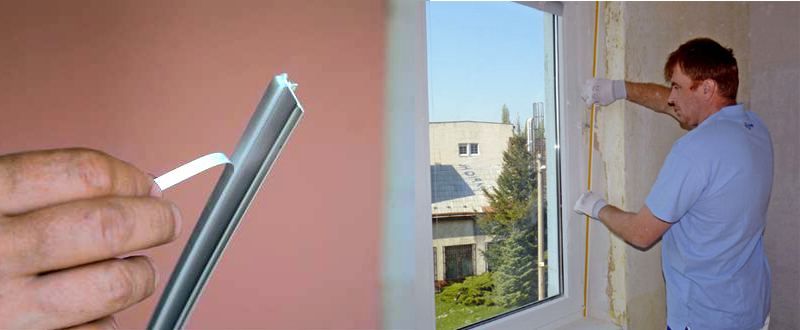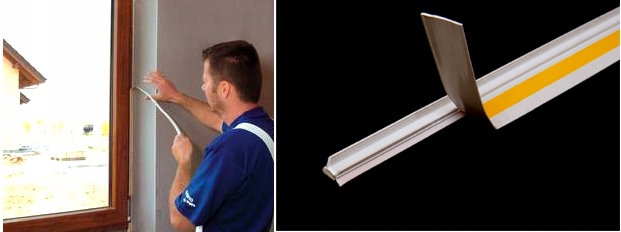 - на смужці є елемент з клейовим шаром, на який потрібно наклеїти захисну плівку, щоб захистити вікно під час штукатурення
