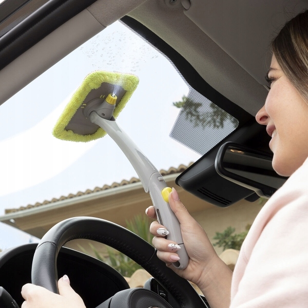 Цей інноваційний пристрій для миття вікон дуже простий у використанні - просто розкладіть ручку та відкрийте вилку, розміщену в кінці, щоб заповнити водою та/або спеціальним агентом з очищення вікна. Ручка оснащена двома кнопками, одна використовується для обприскування, а інша дозволяє складати.