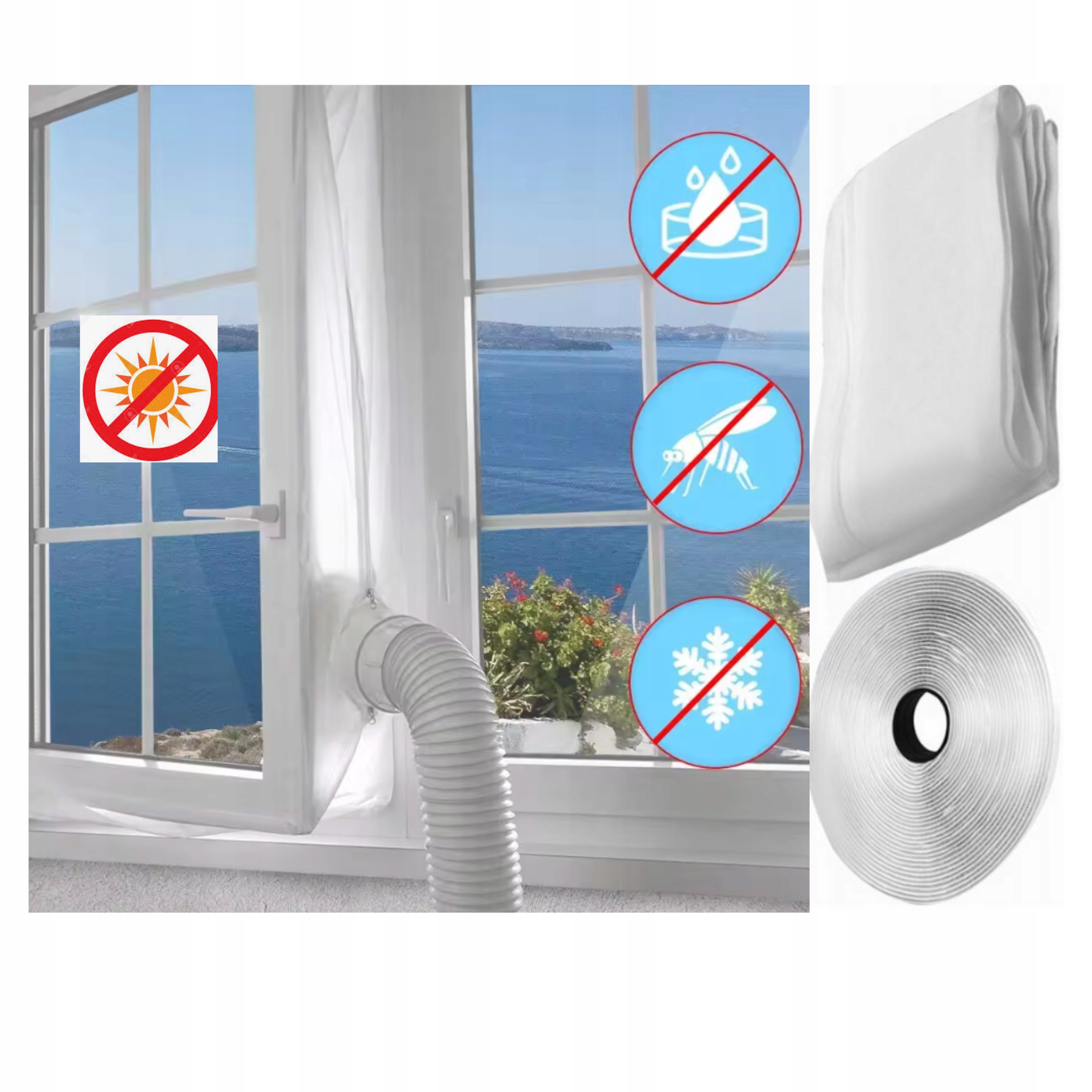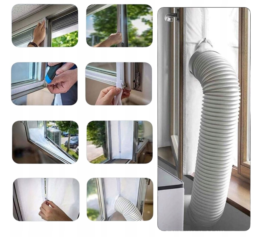 Це ідеальне рішення для людей, які використовують портативні кондиціонери. Наша прокладка вікон на 400 см ефективно запобігає втраті холодного повітря та підвищує ефективність пристрою. Завдяки гнучкому матеріалу ви можете легко адаптувати його до більшості вікон, а збірка швидка і проста. Ущільнювач оснащений рукавом, через який проходить труба від кондиціонера, що забезпечує герметичність і обмежує приплив гарячого повітря до кімнати.