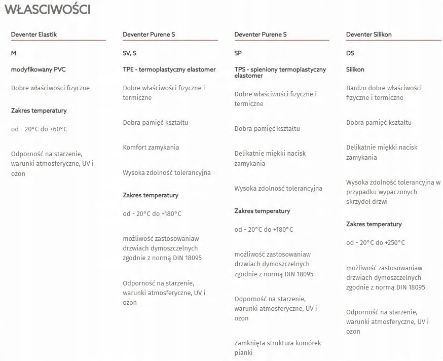 ущільнювачів, виготовлених з високоякісних пластмас TPS, використовуються у столярних виробах з вікон та дверей всередині та поза корпусом. Характеризується чудовими механічними властивостями, встановленими у вищезгаданих конструкціях, забезпечують напругу вітру, воду, звуку та диму. Правильно вибрана прокладка забезпечує комфортне закриття вікон та дверей, а також хороша форма форми гарантує довгострокове використання. Підтримуючи належні терміни сушіння з лакованих поверхонь S, прокладка SV може використовуватися для поверхонь, намальованих фарбами, такими як - фарби та алкідні лаки - поліуретанові лаки / dd лаків - два -компонент Лаки, що використовують інші фарби, ніж вищезазначені випробування на ущільнення опору, що контактують з поверхнею, намальованою поверхнею.