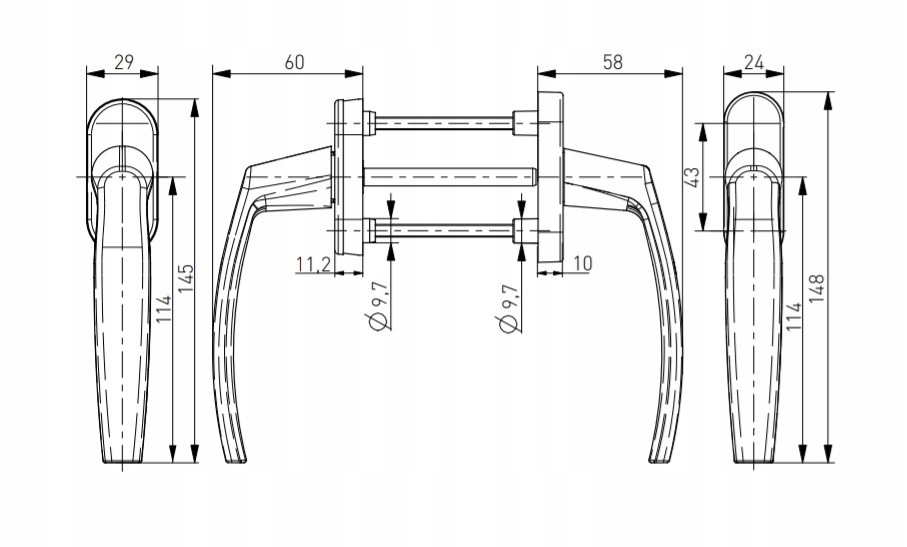 Універсальна подвійна ручка для дверей балкона ПВХ, алюмінію та дерев'яного, виготовленого з металу