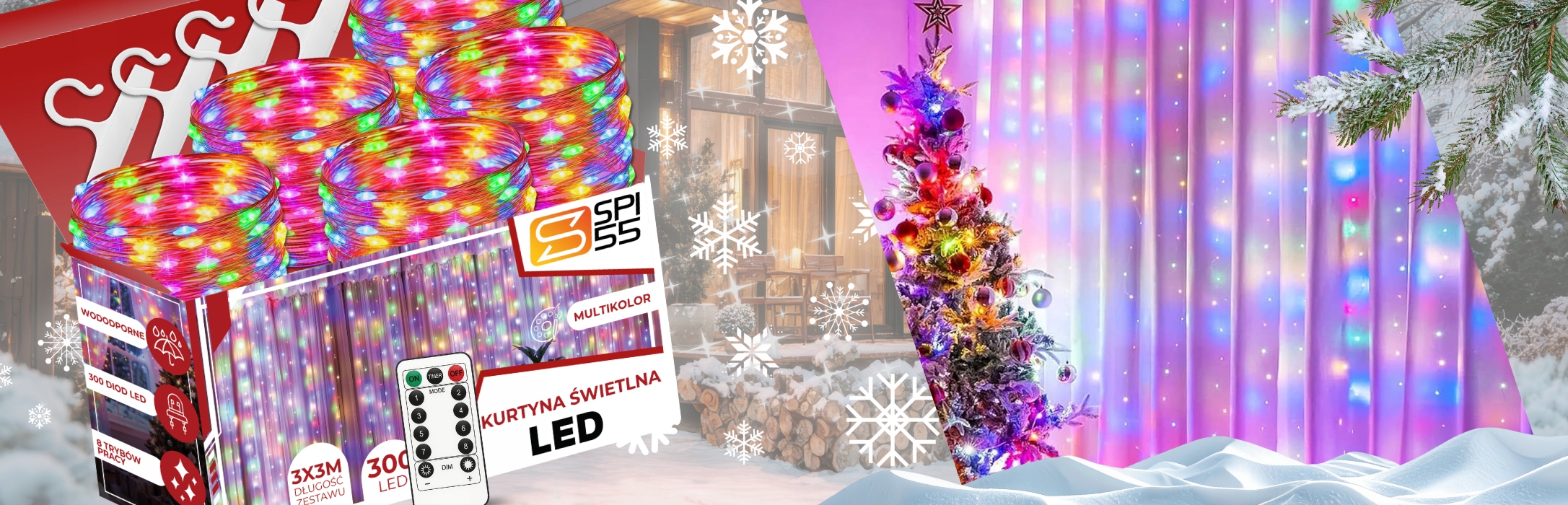 ВІКОННА СВІТЛОВА ГІРЛЯНДА 300 LED 3x3 ЯЛИНОВІ ВОГНІЧКИ