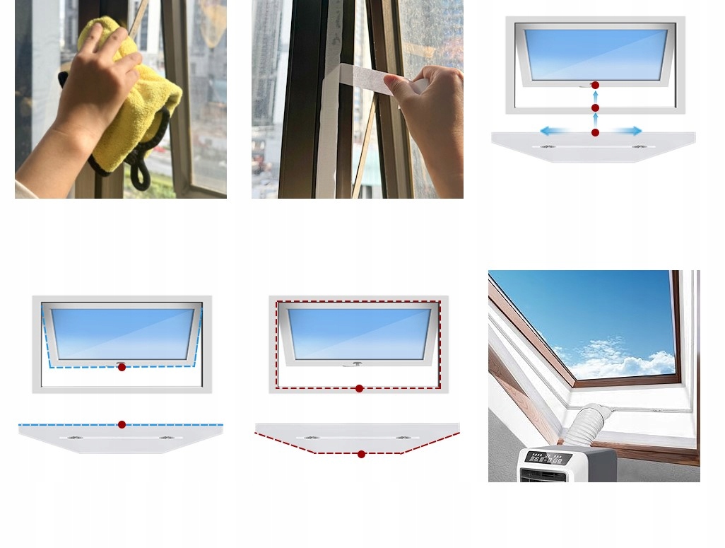 - Широка сумісність: підходить для різних портативних кондиціонерів, сушарки та сушарки, незалежно від діаметра труби. Відповідні типи вікон: плоскі вікна, вікна на даху та вікна з нижньою підвіскою (вони не підходять для лівих та правих ковзаючих вікон та вікон, переміщені вгору та вниз).