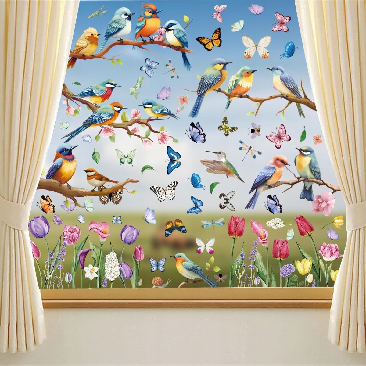 Віконні наклейки весняні прикраси весняні прикраси без клейових птахів