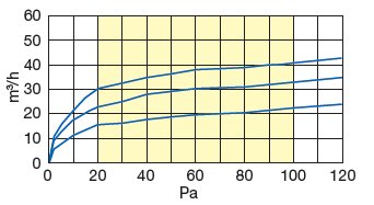 - 15, 22 або 30 м3/год при 20 Па